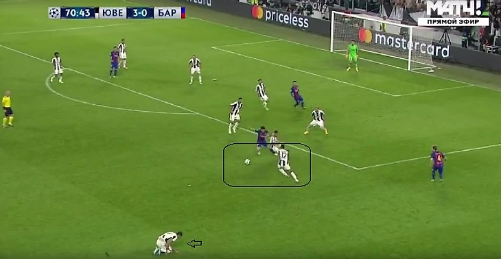 Нет кислорода ни у Месси, ни у Иньесты, ни у Неймара. Месси очень часто опускался вниз за мячом и получал его очень далеко от опасных для "Ювентуса" зон. Каталонцы перестраивались с 4-3-3 на 3-4-3, обратно, туда-сюда. Месси носился везде, чтобы выйти на хорошую позицию, направо уходил Ракитич. Лишь пару моментов удалось создать во втором тайме, этого мало, чтобы забить "Ювентусу", ещё и учитывая любовь "Барсы" к упусканию шансов. В остальном все старания и перестроения тщетны, всё закрыто. Дибала обороняется, Куадрадо бросается вместе с Кьеллини под удары. Это просто вау!