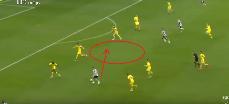 Бенитес привил «Ньюкаслу» схему 4-4-1-1, т.е. разновидность любимой расстановки Рафы 4-2-3-1, которую он ставил и «Челси», и «Наполи». И одним из важнейших игроков в его модели является Мэтт Ритчи, выступающий на позиции правого вингера. Шотландец является одним из немногих, на кого ротация не распространяется, посему в минувшем сезоне Чемпионшипа он играл почти без перерыва. Ритчи – левша, но при этом он играет на правом фланге. По манере игры он частично напоминает Арьена Роббена: тоже любит смещаться справа в центр и лупить по воротам. Но таланты шотландца этим не ограничиваются. Ритчи зачастую играет по всей ширине атаки, появляясь то справа, то слева. Он умело открывается и грамотно заполняет свободные зоны. Как, например, на этом слайде.