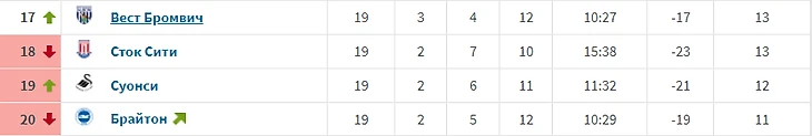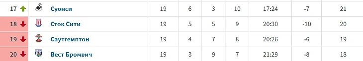 У «чаек» меньше всего очков, но по домашним матчам они на 8 месте (29 очков). А вот «Сток Сити», «Сотон» и «Вест Бромвич» были худшими по домашним матчам