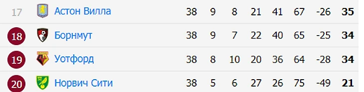 «Норвич» в гостях пропускал 7 от «Челси». «Уотфорд» - по 5 от «Ман Сити» и «Ливерпуля». А вот «Бёрнли» ввёл борьбу до последнего тура (проиграли «Ньюкаслу» в гостях 1:2).
