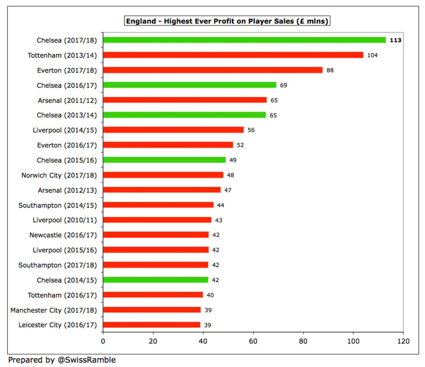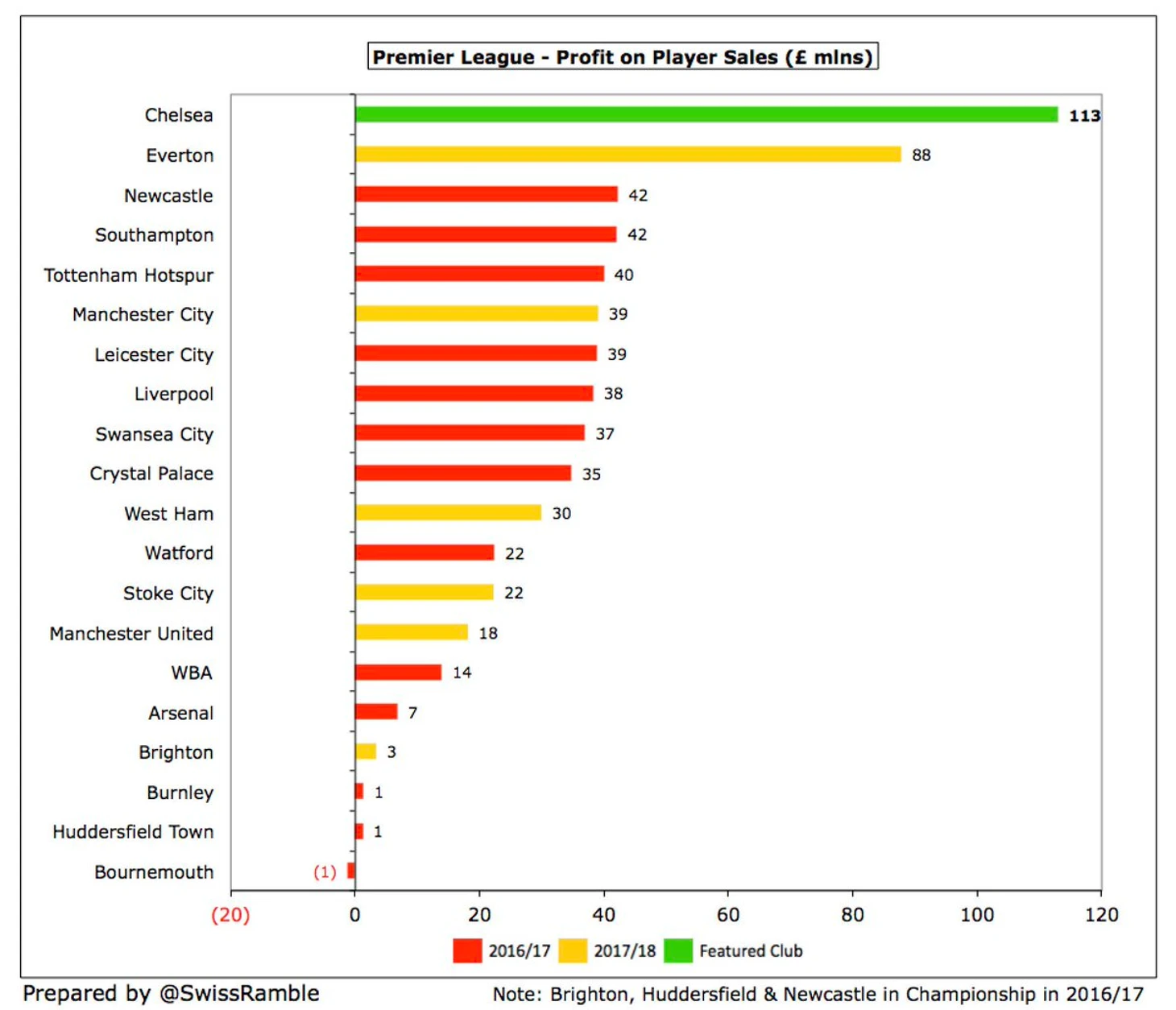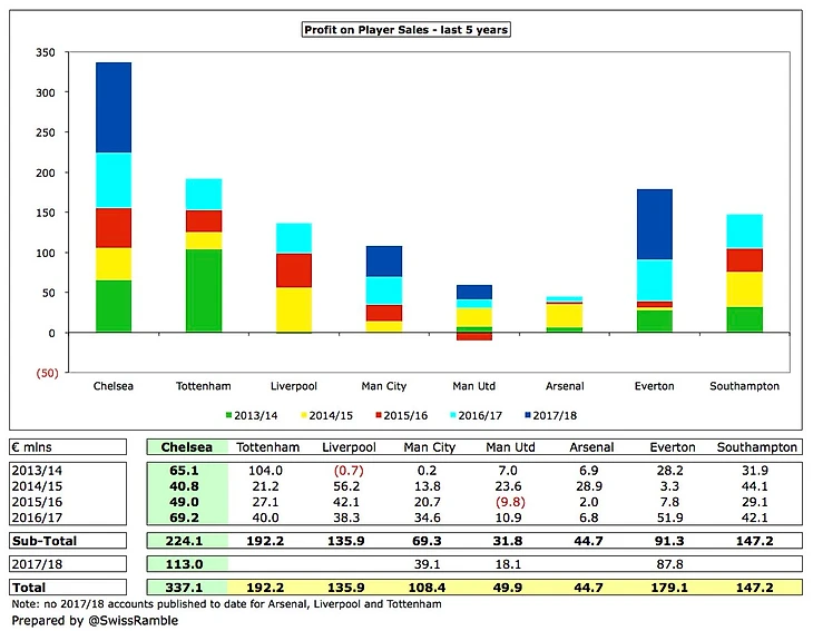 «Челси» зависит от продажи игроков больше, чем любой другой топ-клуб АПЛ. За 5 лет это принесло клубу 337 млн фунтов. Для сравнения: ближайший «преследователь» – «Тоттенхэм» – заработал 192 млн (за 4 года), «Манчестер Сити» и «Манчестер Юнайтед» – 108 и 50 млн соответственно.