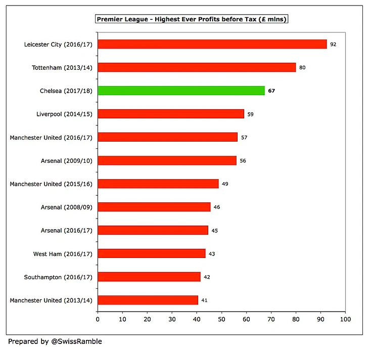 Такая прибыль до вычета налогов – лучшая в чемпионате за этот же сезон среди клубов, уже опубликовавших свои финансовые отчеты (из топ-6 не опубликовали «Арсенал» и «Ливерпуль») и третья в истории АПЛ (уступает только лигочемпионскому сезону-2016/17 «Лестера» (90 млн фунтов) и «Тоттенхэму» сезона-2013/14, когда он продал Гарета Бейла за 80 млн).