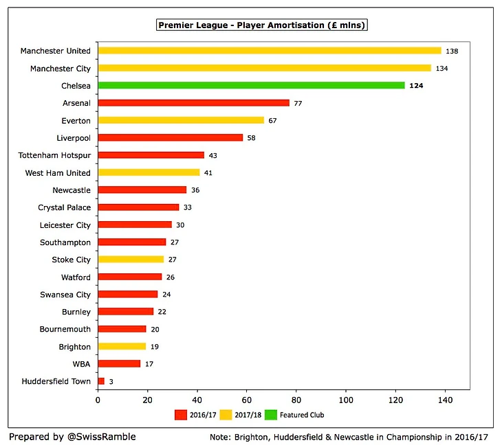 Амортизация игроков выросла на 40% – до 124 млн фунтов, что отражает серьезные инвестиции в состав. По этому показателю клуб приблизился в лидерам из Манчестера (138 млн – у «Юнайтед» и 134 млн – у «Сити»).