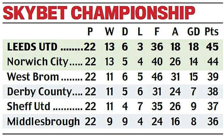 На данный момент «Лидс» занимает первую строчку в таблице Чемпионшипа, на одно очко опережая «Норвич Сити». Но гораздо важнее, что команда имеет отрыв от зоны «плей-офф» на целых шесть очков. В эти выходные команде Бьелсы предстоит непростая выездная игра против «Астон Виллы». Если турнирная ситуация не изменится после этого матча, то «Лидс» впервые за 14 лет встретит Рождество в статусе лидеров Чемпионшипа.