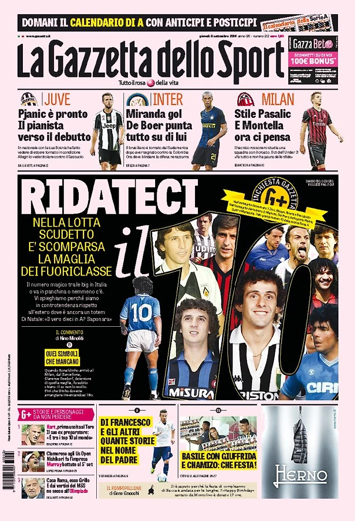 «Верните нам 10». Заголовки Gazzetta, TuttoSport и Corriere за 8 сентября