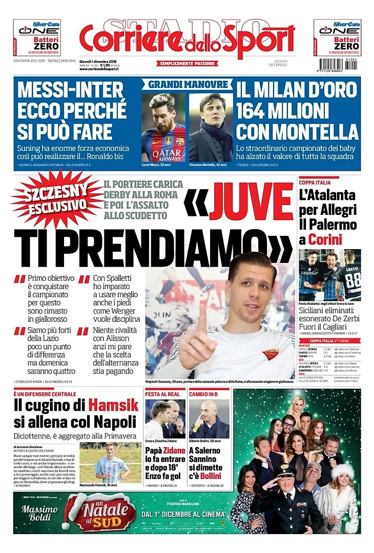 Эксклюзив от Шченсны, вратарь заряжает «Рому» на дерби и затем на штурм Скудетто. «Первая цель – это выиграть чемпионат, для этого я остался Джаллоросси. Мы сильнее «Лацио», одного очко разницы мало, но в воскресенье их станет четыре. Со Спаллетти я научился лучше использовать также ноги, как и Венгер, он хочет дисциплины. Никакого соперничества с Алиссоном, мне даже кажется, что чередование приносит свою пользу».