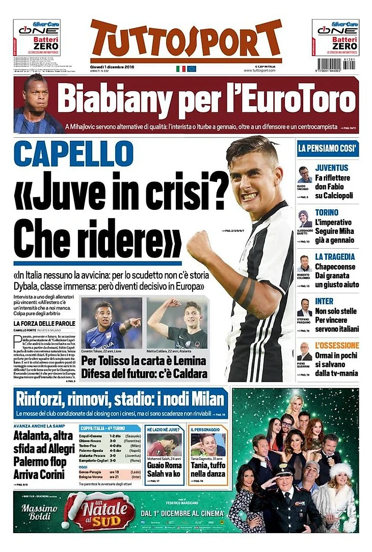 «Юве» в кризисе? Как смешно». Заголовки Gazzetta, TuttoSport и Corriere за 1 декабря