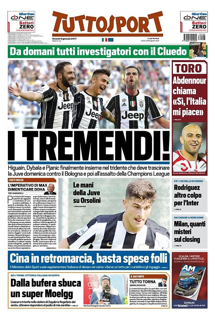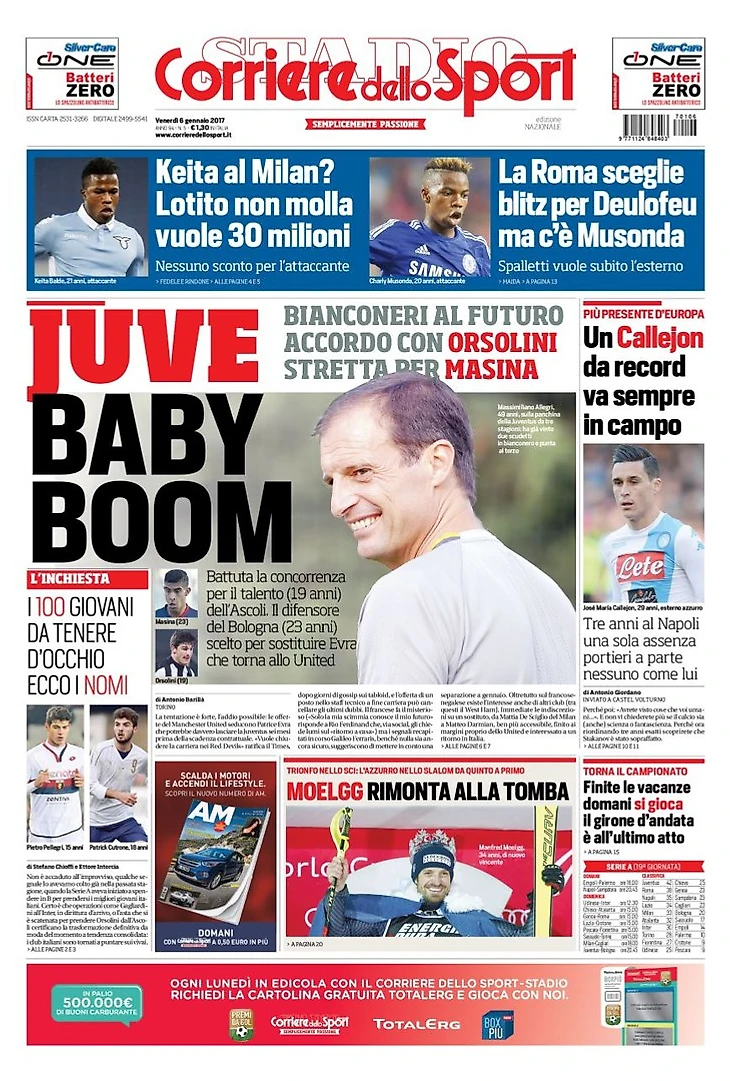 «Бэби-бум от «Юве». Заголовки Gazzetta, TuttoSport и Corriere за 6 января