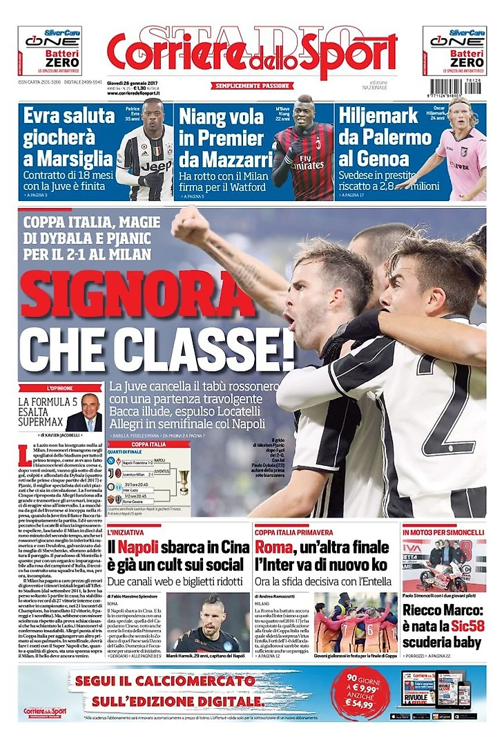 «Синьора, каков класс!». Заголовки Gazzetta, TuttoSport и Corriere за 26 января