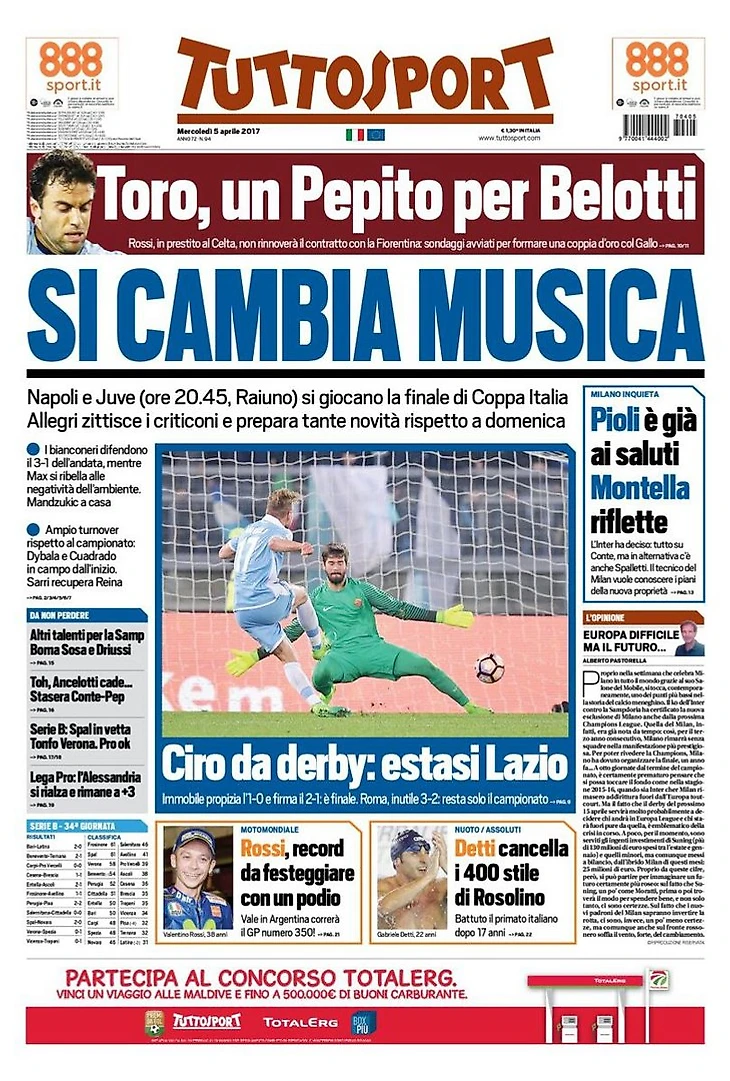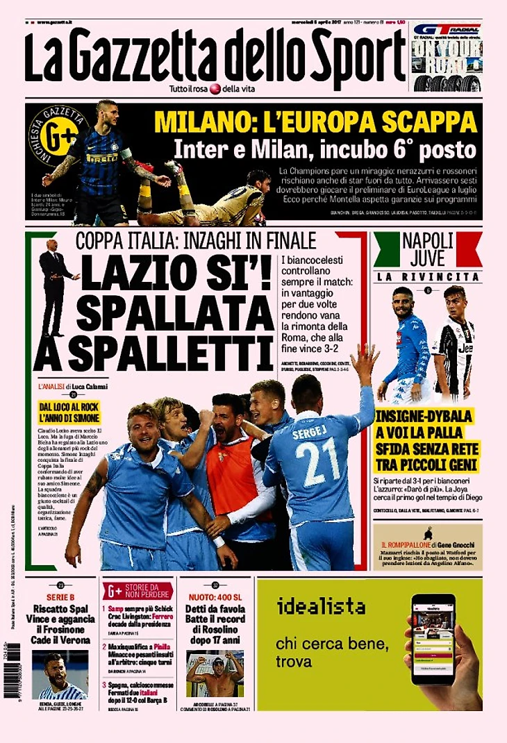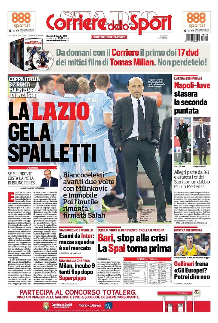 «Лацио» замораживает Спаллетти». Заголовки Gazzetta, TuttoSport и Corriere за 5 апреля