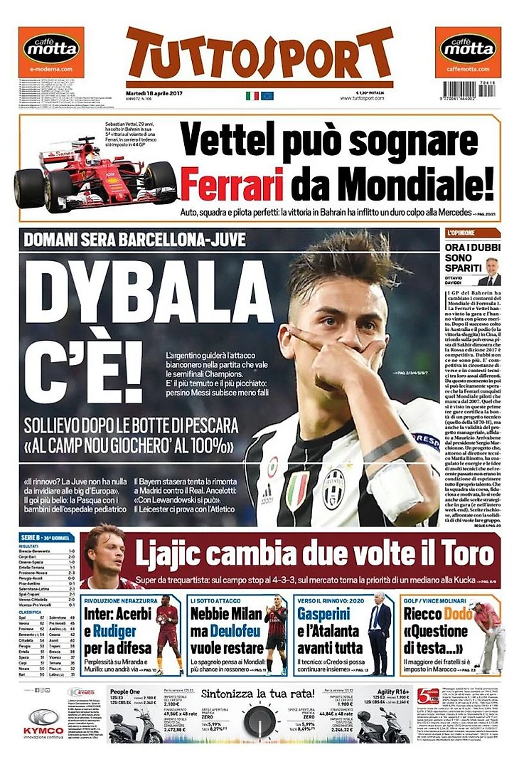 Завтра вечером «Барселона»-«Ювентус». Аргентинец возглавит атаку Бьянконери в матче, который стоит полуфинала Лиги Чемпионов. Он более опасный и более побитый: даже на Месси фолят реже. Облегчение после ударов «Пескары»: «На «Камп Ноу» сыграю на 100%. Продление? «Юве» не имел никакой зависит перед топ-клубами Европы» Самый красивый гол: Пасха с детьми из педиатрического госпиталя. «Бавария» этим вечером попытается отыграться в Мадриде против «Реала». Анчелотти: «С Левандовским это возможно». «Лестер» попробует обыграть «Атлетико».