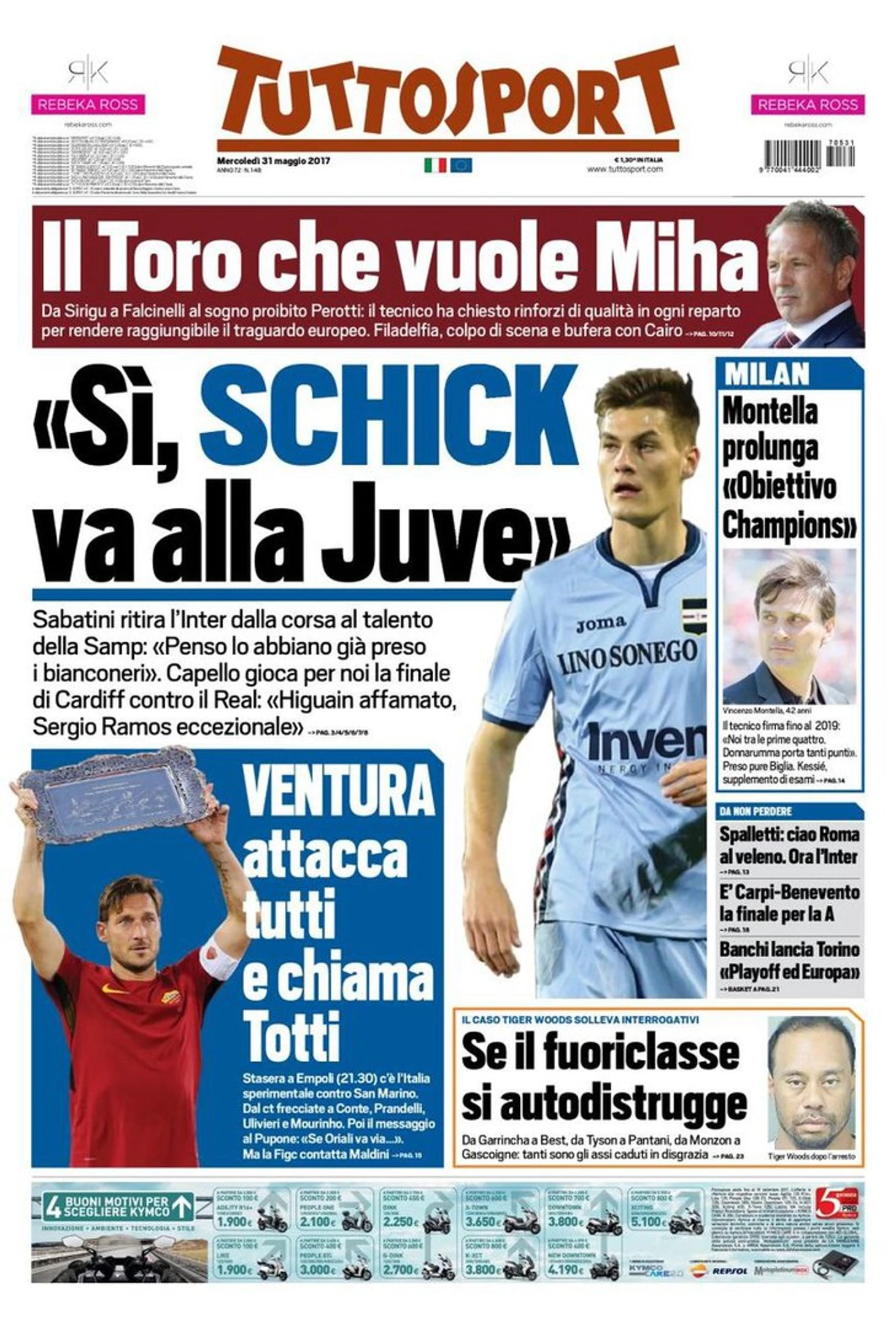 Сабатини убирает «Интер» из гонки за талантом из «Самп»: «Я думаю, что он уже подписал контракт с Бьянконери». Капелло играет за нас в финале в Кардиффе против «Реала»: «Игуаин голоден, Серхио Рамос исключителен».