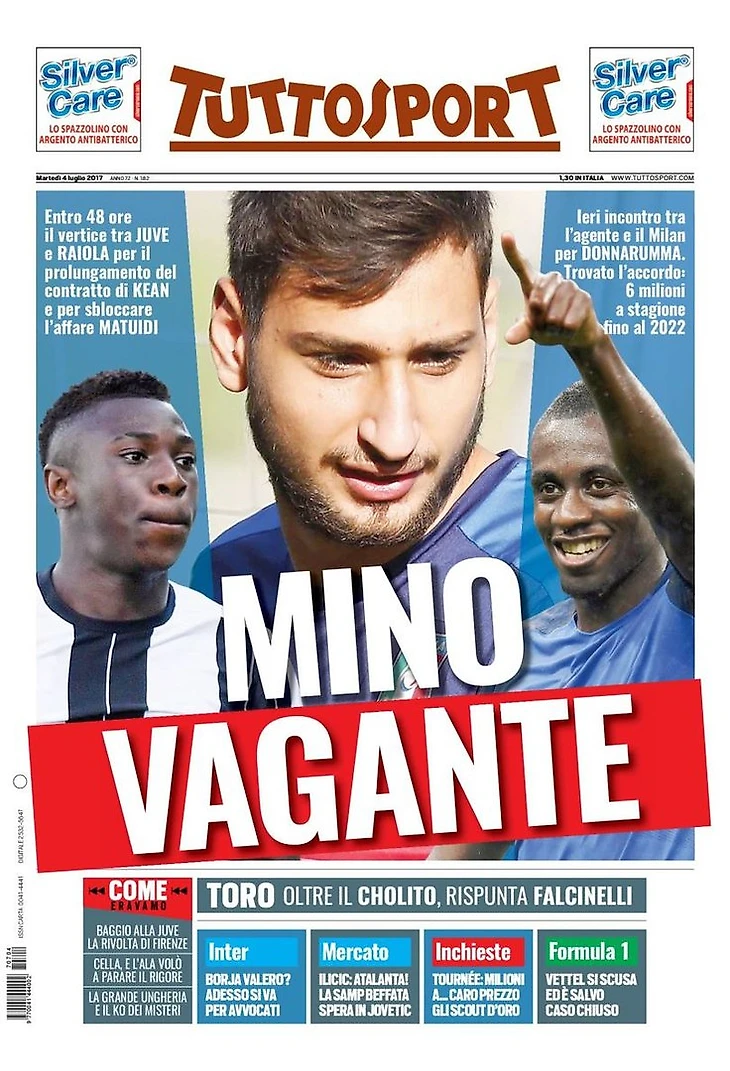 В течение 48 часов встреча между «Юве» и Райолой по продлению контракта Кина и по разблокированию сделки по Матюиди. Вчера встреча между агентом и «Миланом» по Доннарумме. Найдено соглашение: 6 миллионов за сезон до 2022 года.