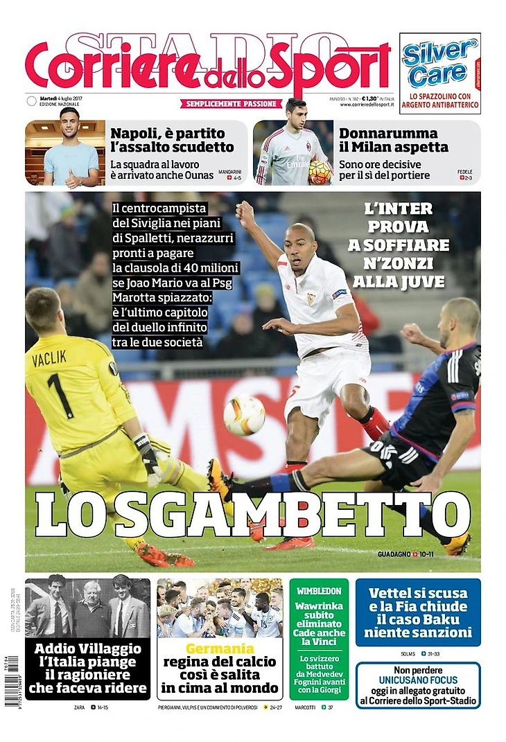 «Интер» пробует увести Н’Зонзи у «Юве». Полузащитник «Севильи» в планах Спаллетти, Нерадзурри готовы выплатить клаусулу в 40 миллионов, если Жоау Мариу уйдёт в «ПСЖ». Маротта потеснён: это последняя глава бесконечной дуэли между двумя клубами.