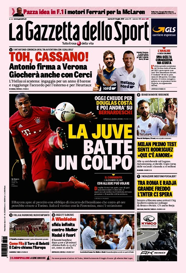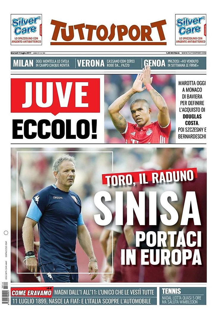 Сегодня завершение переговоров по Дугласу Косте, затем переговоры по Бернардески. «Бавария» открыта к аренде с обязательством выкупа бразильца, который в течение 48 часов может быть в Турине. Сорвалась встреча с «Фиорентиной», но есть оптимизм.
