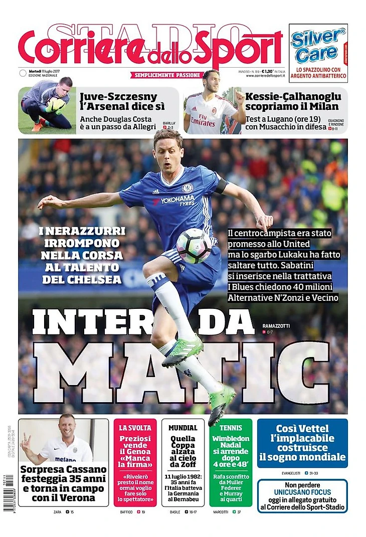 Нерадзурри врываются в борьбу за таланта из «Челси». Полузащитник был пообещан «Юнайтед», но кража Лукаку сорвала всё. Сабатини включается в переговоры. «Синие» просят 40 миллионов. Альтернативы – это Н’Зонзи и Весино.