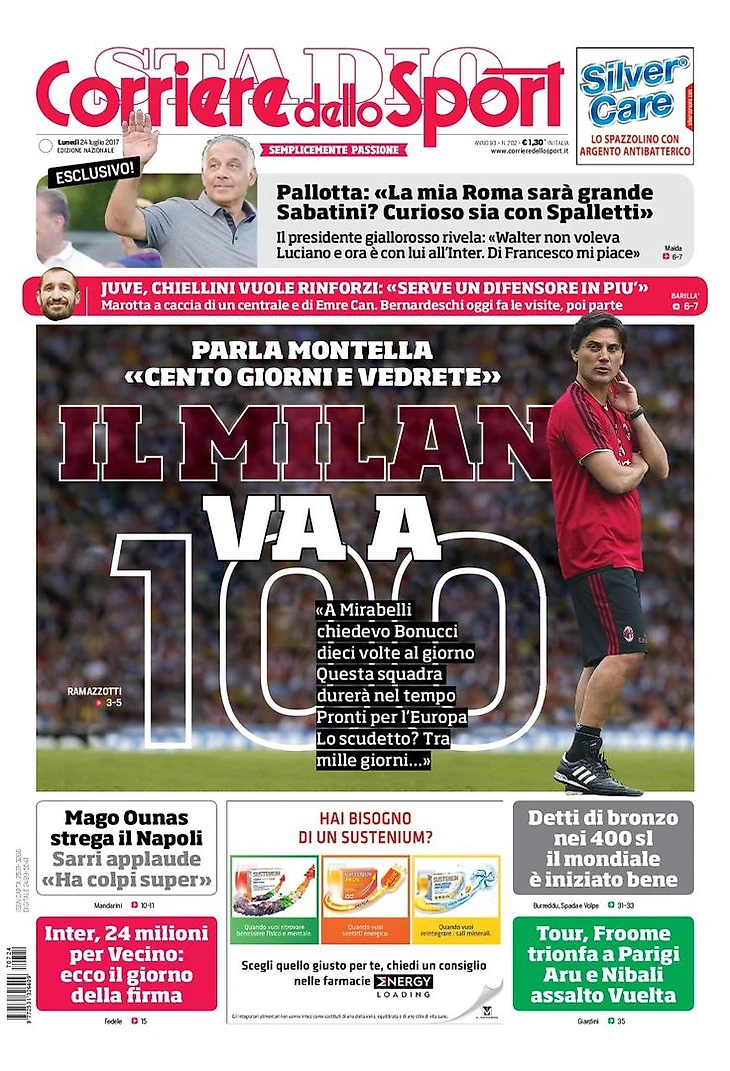 «Милан» идёт к 100. Заголовки Gazzetta, TuttoSport и Corriere за 24 июля