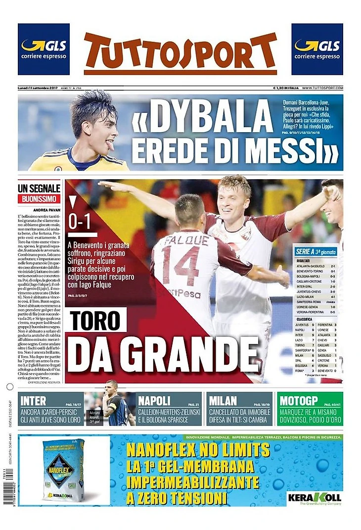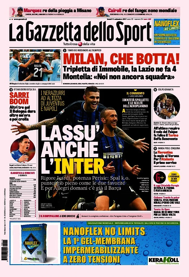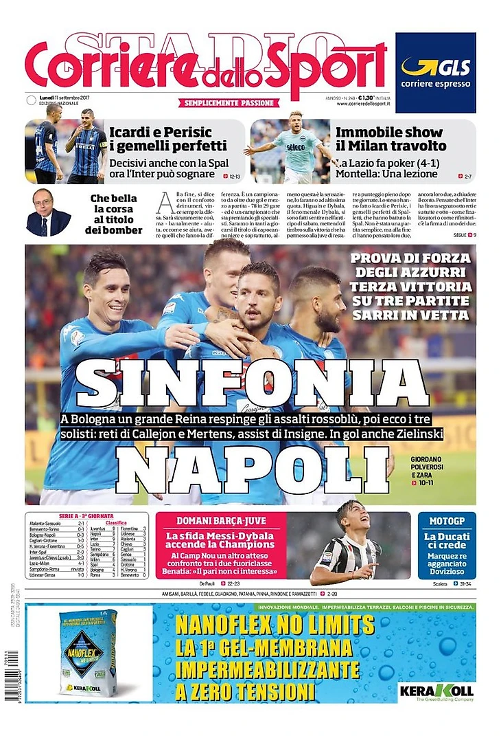 Симфония «Наполи». Заголовки Gazzetta, TuttoSport и Corriere за 11 сентября