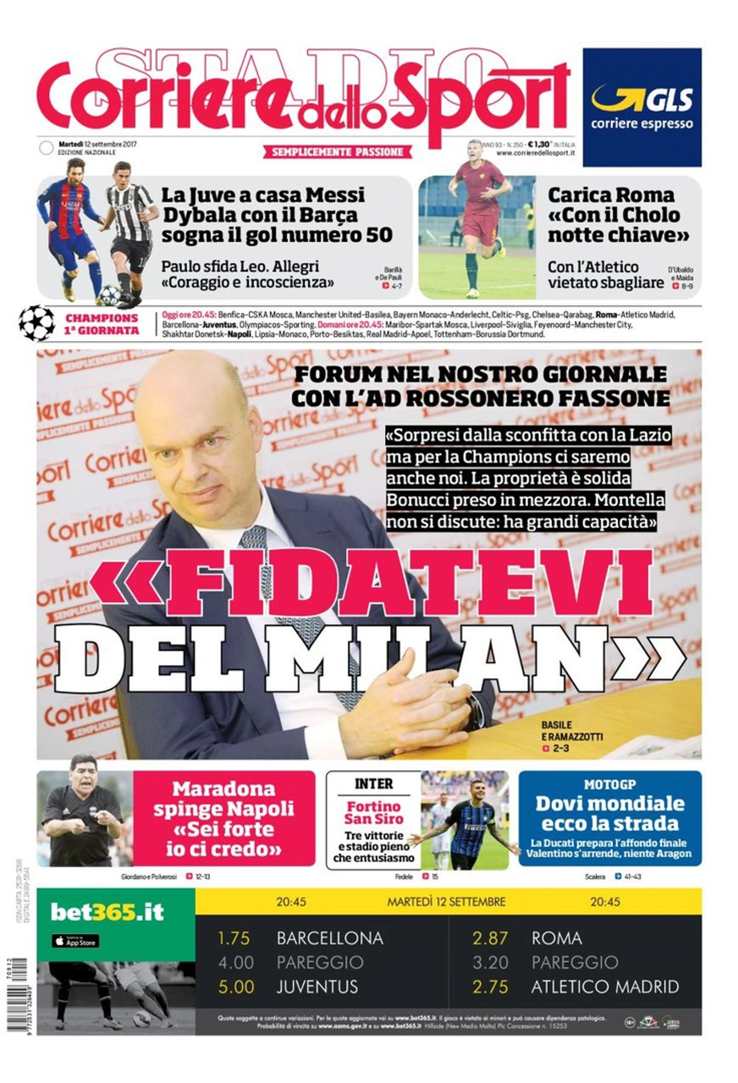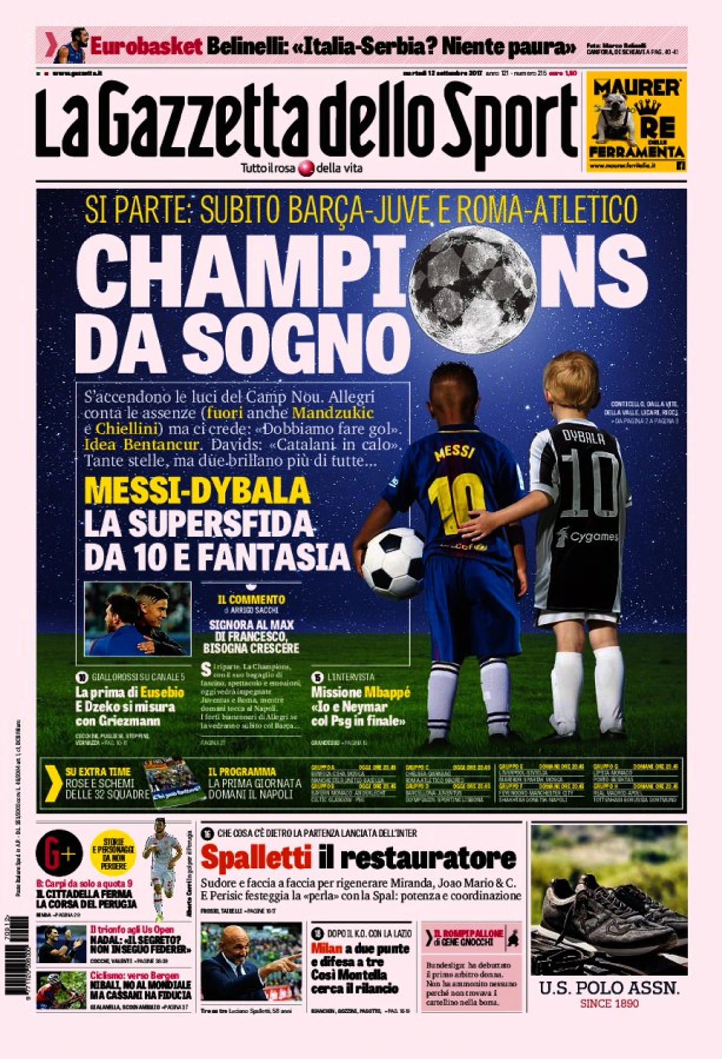 Лига Чемпионов мечты. Заголовки Gazzetta, TuttoSport и Corriere за 12 сентября