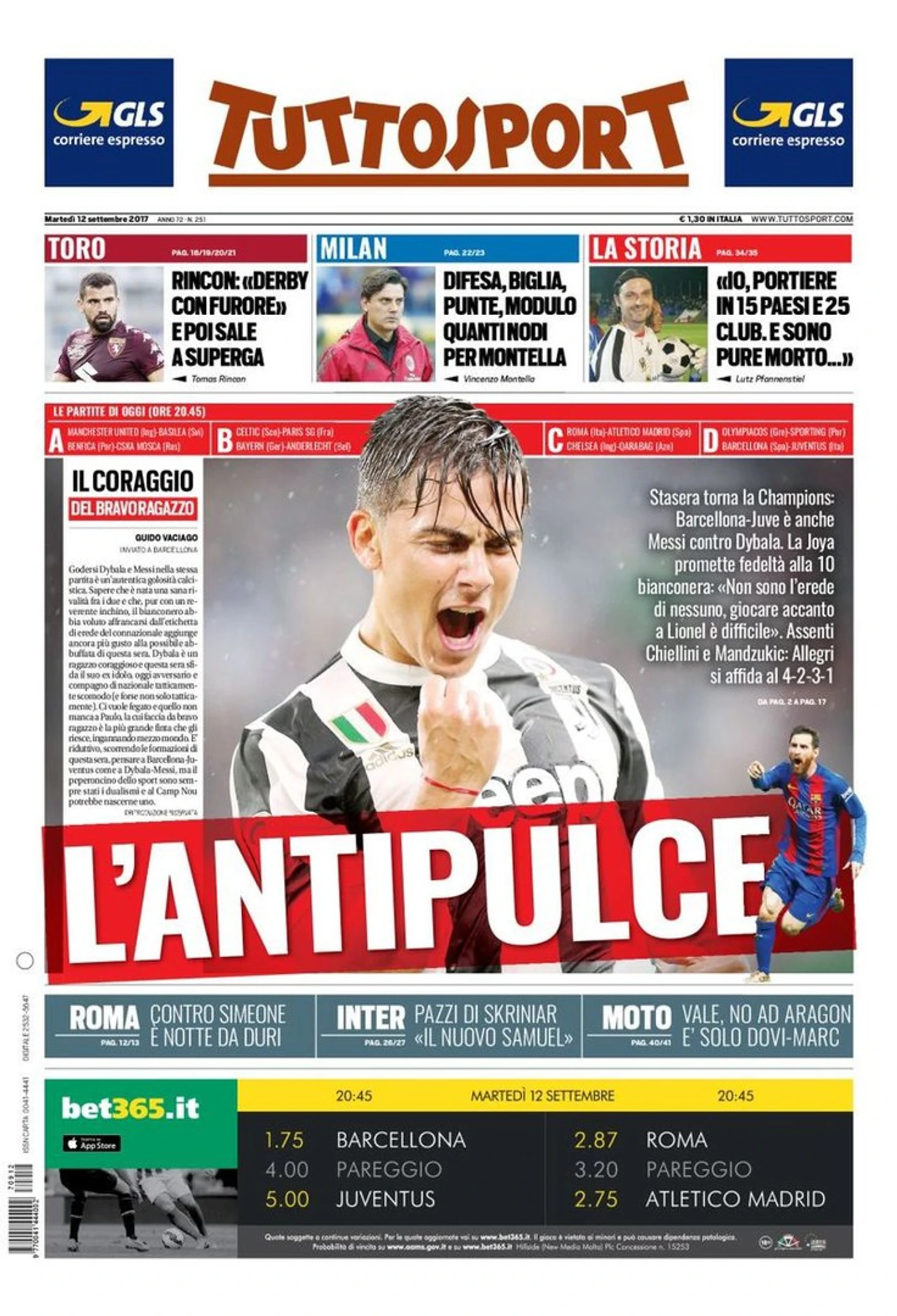 Этим вечером возвращается Лига Чемпионов: «Барселона»-«Юве» – это также Месси против Дибалы. «Жемчужина» пообещал верность 10-ому номеру Бьянконери: «Я не являюсь ничьим наследником, играть рядом с Лионелем тяжело». Отсутствуют Кьеллини и Манджукич: Аллегри доверяется 4-2-3-1.