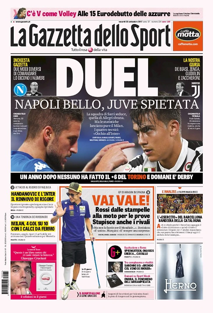 Ярость дерби. Заголовки Gazzetta, TuttoSport и Corriere за 22 сентября