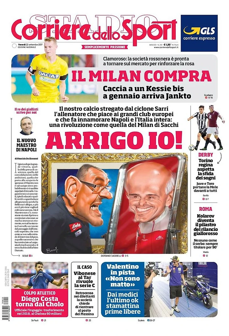 Наш футбол околдован циклоном Сарри, тренером, который нравится европейским топ-клубам и который влюбил в себя Неаполь и всю Италию: революция вроде той, что сделал «Милан» Сакки.