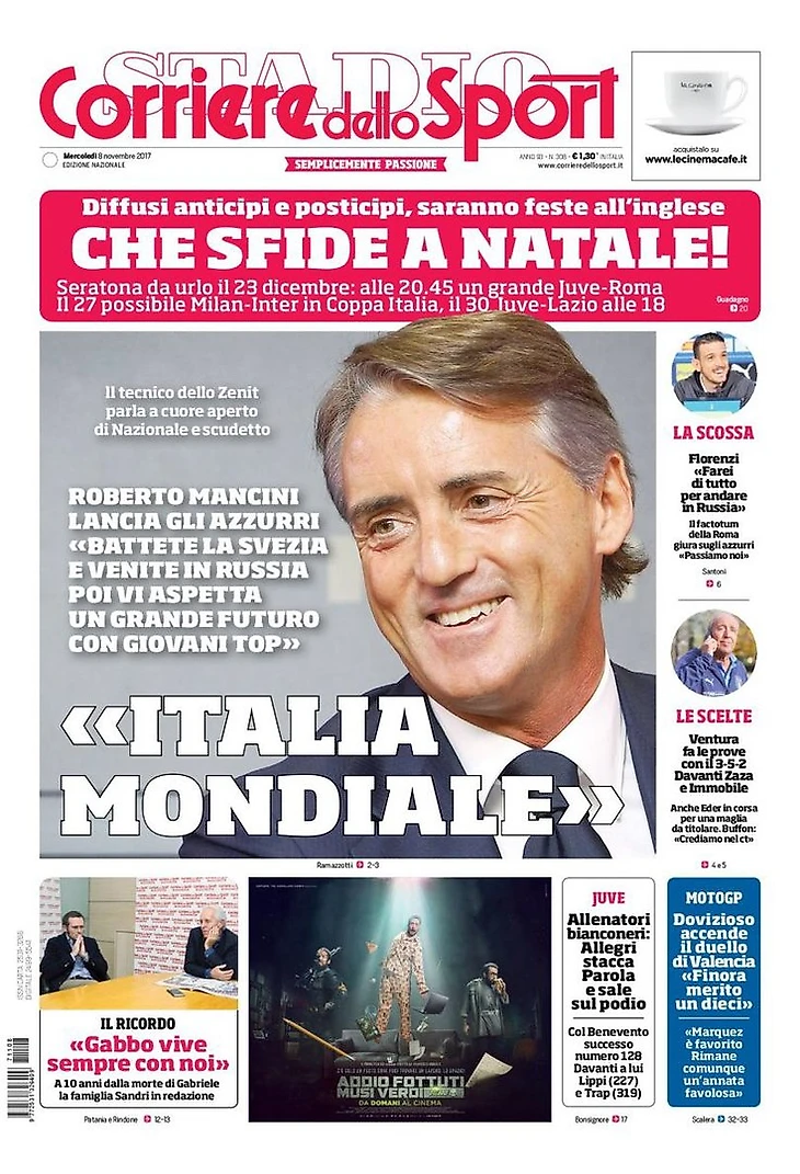 Впереди Дзадза, ребус Инсинье. Заголовки Gazzetta, TuttoSport и Corriere за 8 ноября