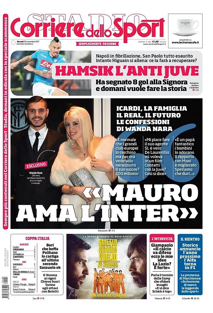 Икарди, семья, «Реал», будущее. Признания Ванды Нары: «Это нормально, что большие европейские клубы за ним следят, но на данный момент он видит только Нерадзурри. Его цена? 200 миллионов. Мне нравится быть его агентом. Да, это правда, что Де Лаурентис хотел снять меня в фильме. Контакты с «Юве»? Так говорят они. Он фантастический отец, дети его слушаются. Отношения с Макси улучшились. Надеемся, что трудности…».