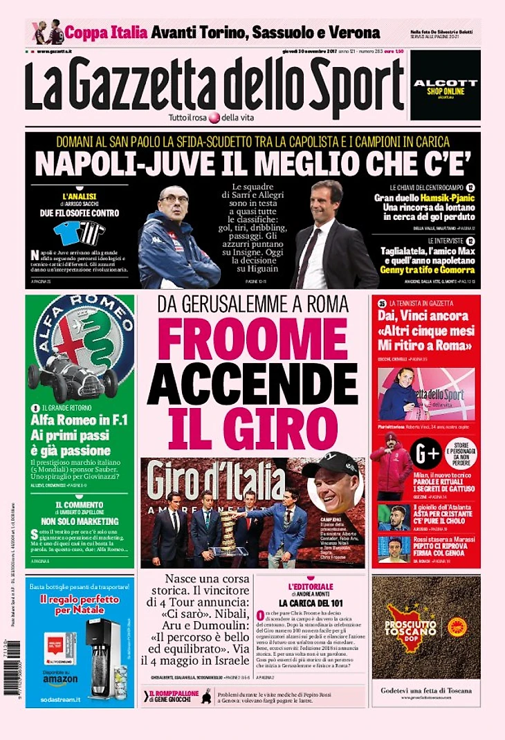 Тотальное противостояние. Заголовки Gazzetta, TuttoSport и Corriere за 30 ноября