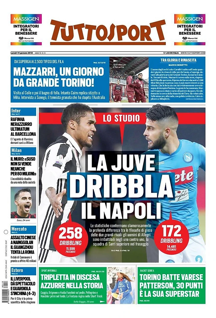 «Юве» обводит «Наполи». Заголовки Gazzetta, TuttoSport и Corriere за 15 января
