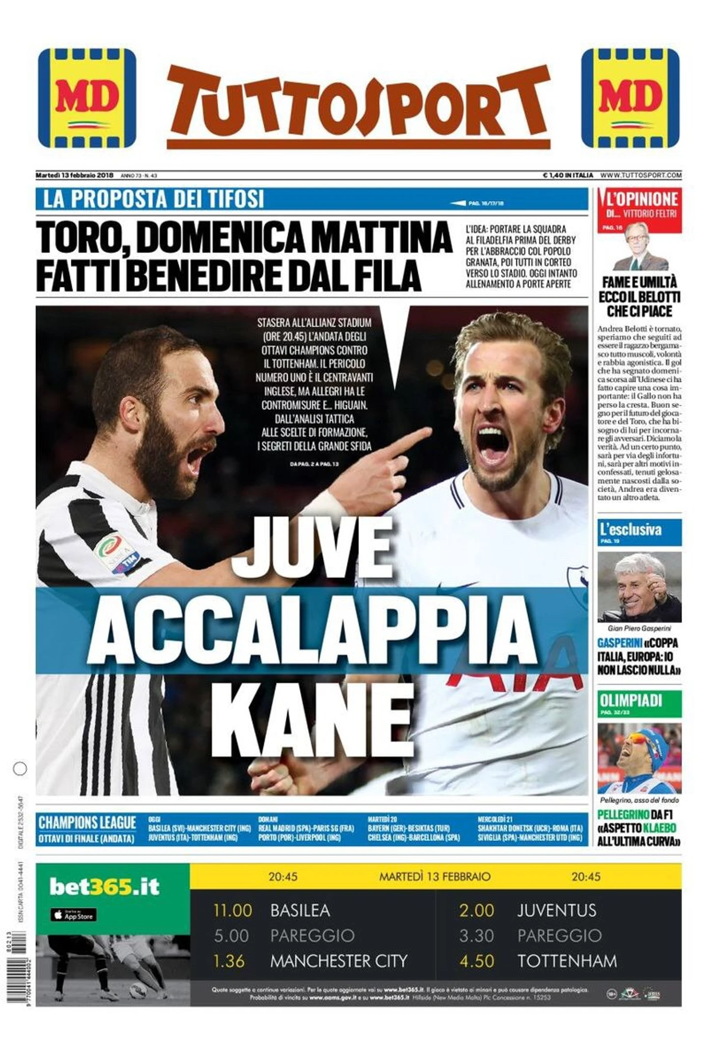 Лига Чемпионов возвращается с первыми матчами 1/8-финала. На «Стэдиум» (20:45 CET) состоится матч «Юве»-«Тоттенхэм». Это звёздная схватка между Игуаином и феноменом «шпор». Бентанкур – фаворит, чтобы заменить Матюиди. Аллегри: «Быть смелыми и легкомысленными».