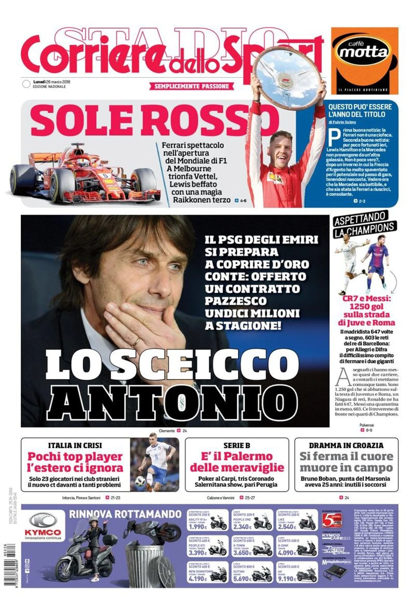 Шейх Антонио. Заголовки Gazzetta, TuttoSport и Corriere за 26 марта