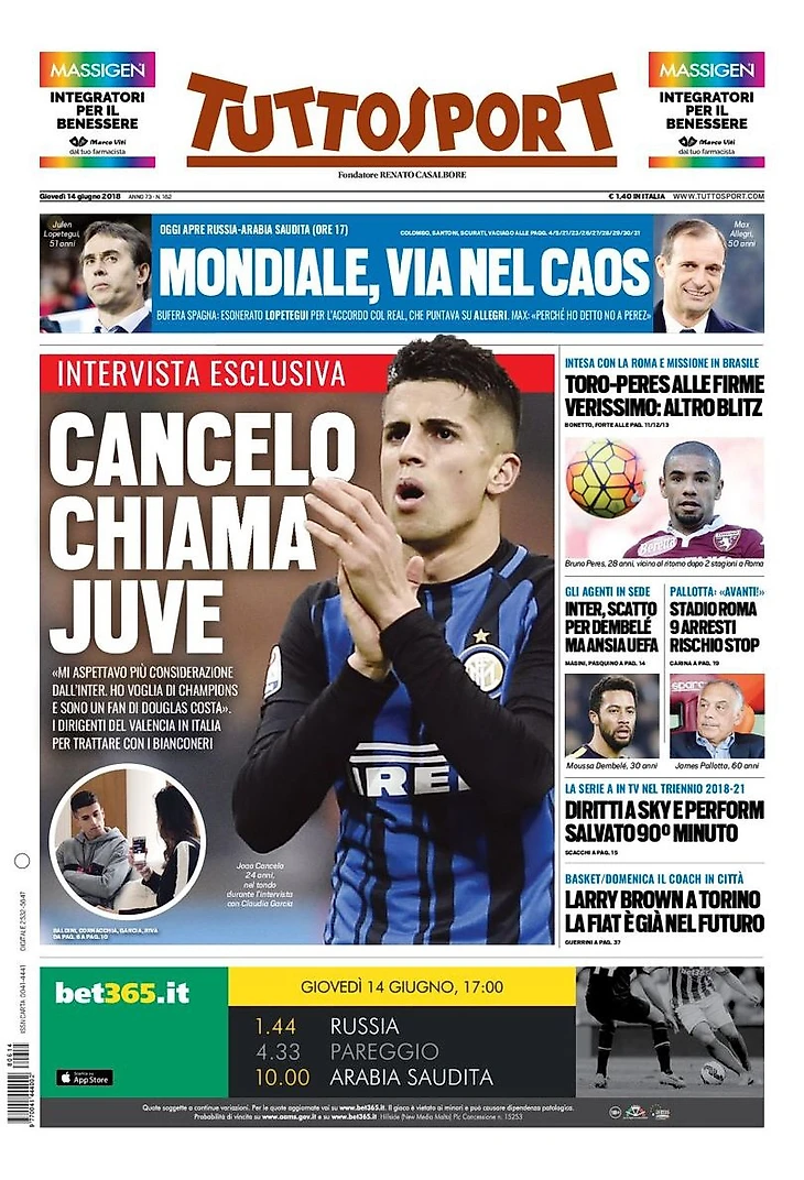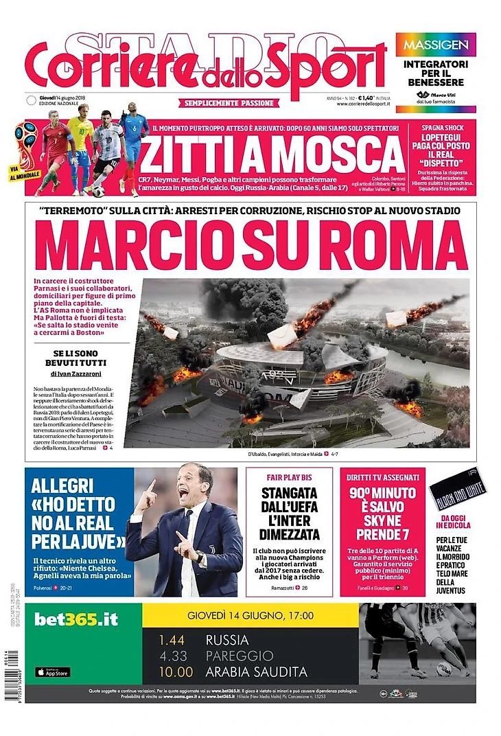 Развлекайте Мир. Заголовки Gazzetta, TuttoSport и Corriere за 14 июня