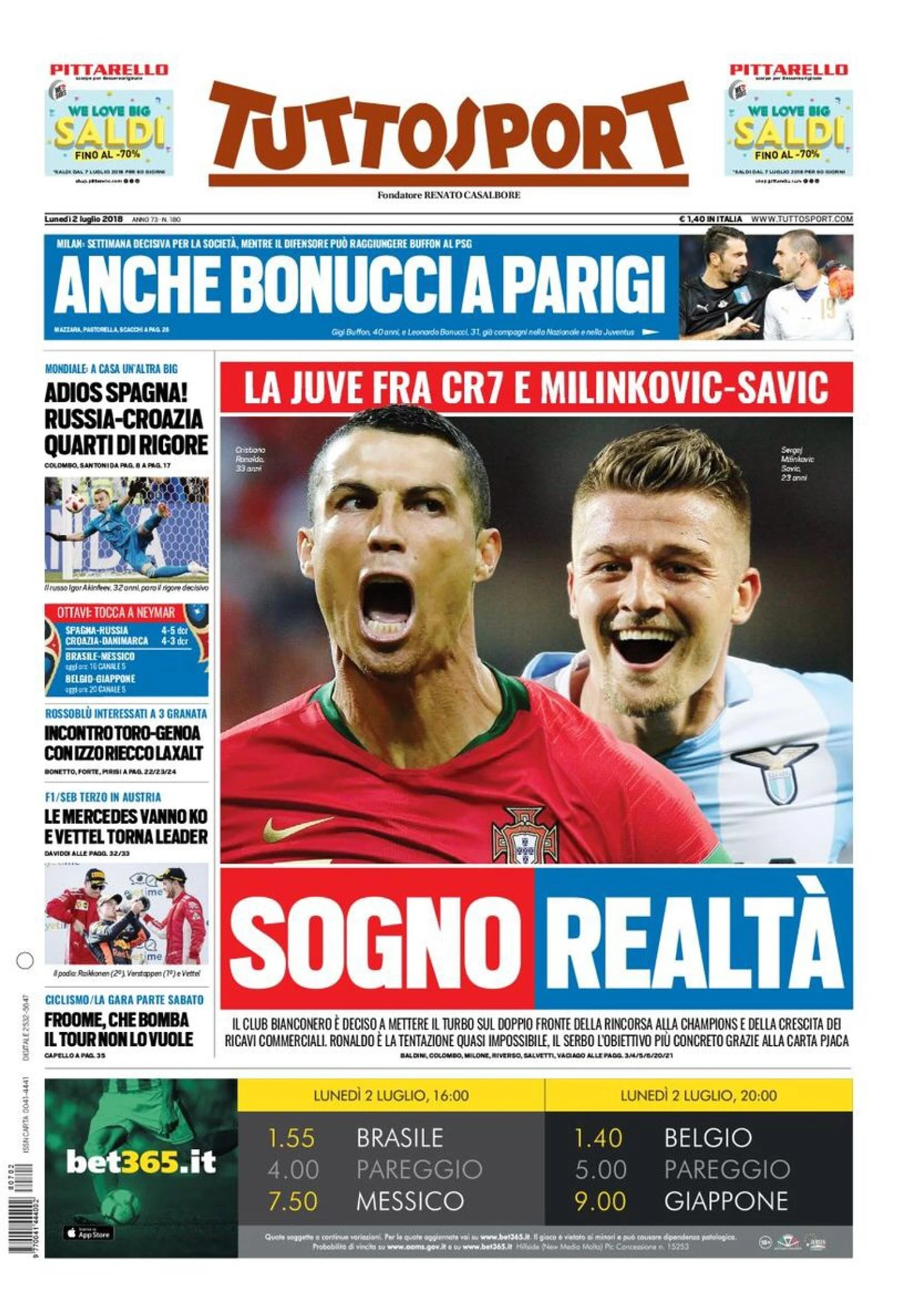 «Юве» между CR7 и Милинковичем-Савичем. Клуб Бьянконери решил включить турбо на двойном фронте забега за Лигой Чемпионов и роста коммерческих доходов. Роналду – это почти нереальный соблазн, серб – более конкретная цель благодаря правам на Пьяцу.