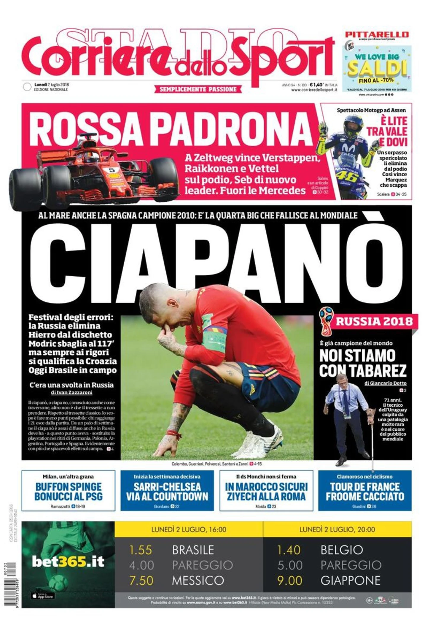 Испания, адьос. Заголовки Gazzetta, TuttoSport и Corriere за 2 июля