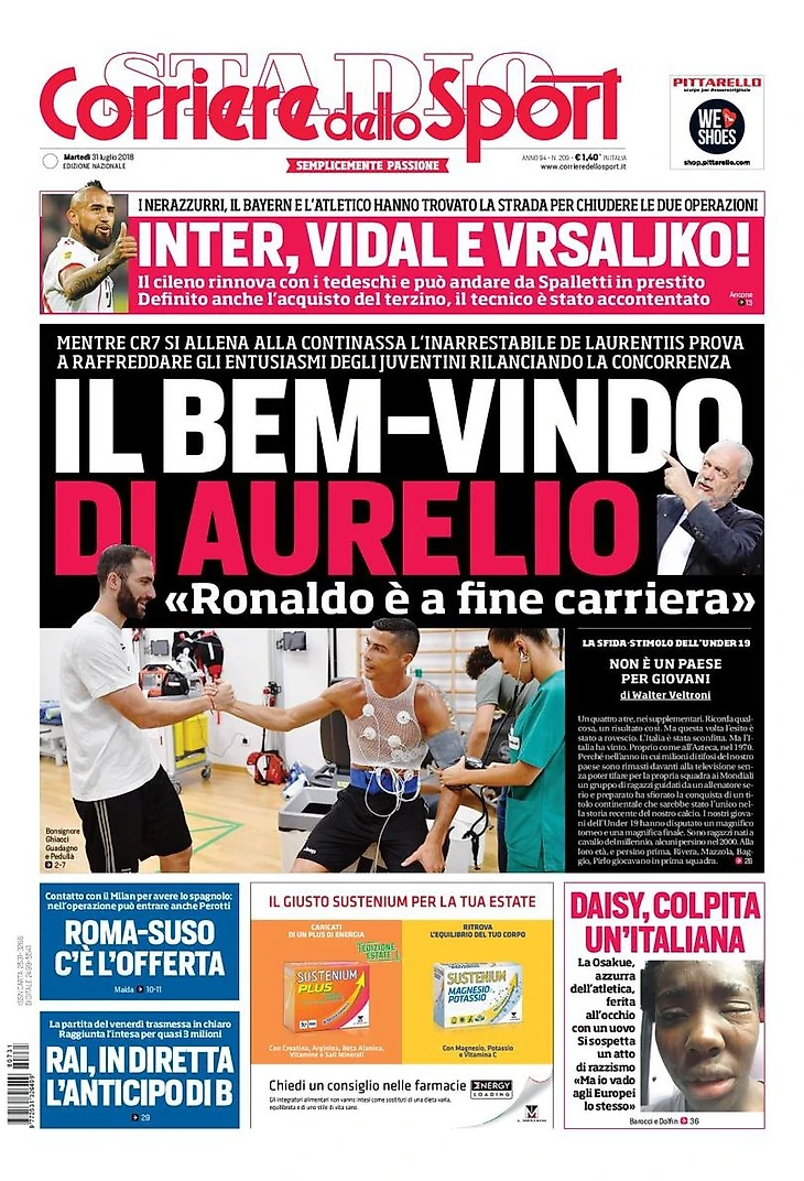 «Роналду завершает карьеру». Пока CR7 тренируется в Континассе, неудержимый Де Лаурентис пробует охладить энтузиазм ювентини, вновь начав конкуренцию.