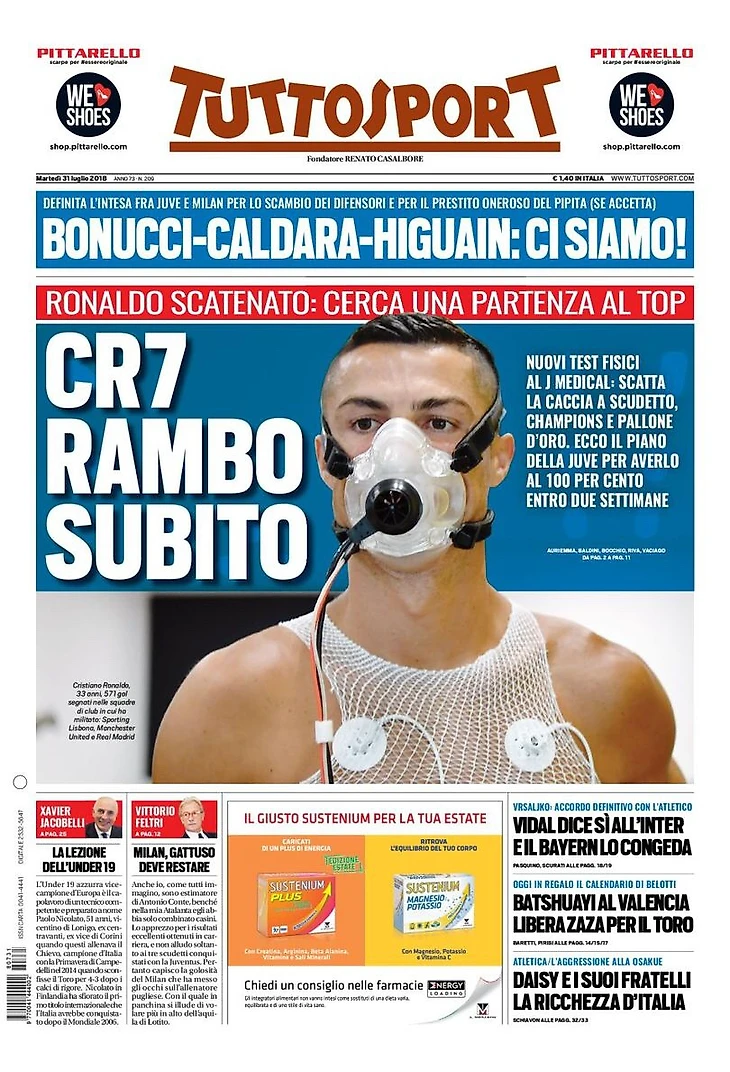 Роналду разошёлся: он в поисках топового старта. Новые физические тесты в J Medical: начинается охота за Скудетто, Лигой Чемпионов и Золотым Мячом. Вот план «Юве», чтобы он был готов на 100 процентов в течение двух недель.