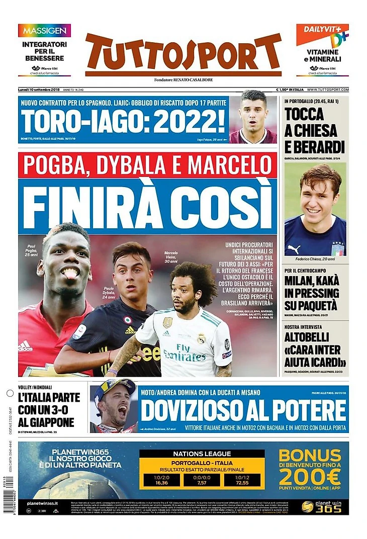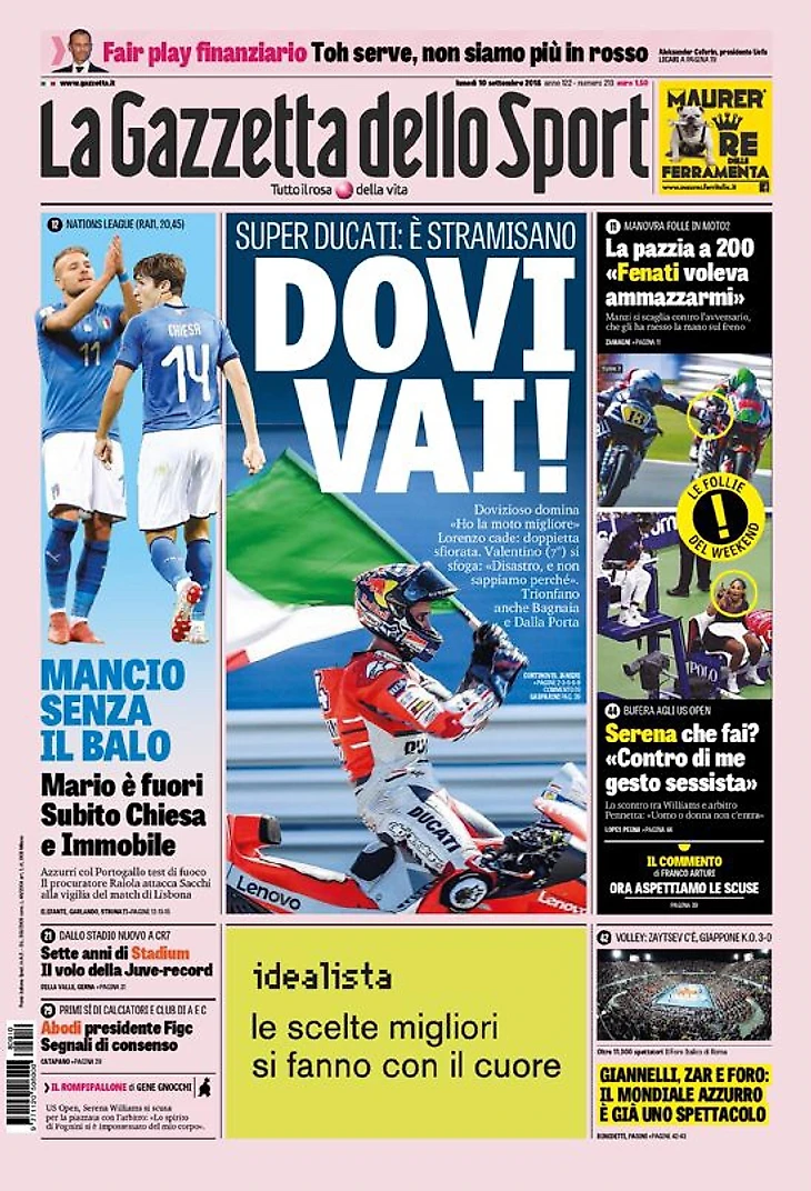 Лига Наций (20:45 CET). Марио вне состава. Сразу выйдёт Кьеза и Иммобиле. Проверка огнём для Адзурри с Португалией. Агент Райола атакует Сакки накануне матча в Лиссабоне.