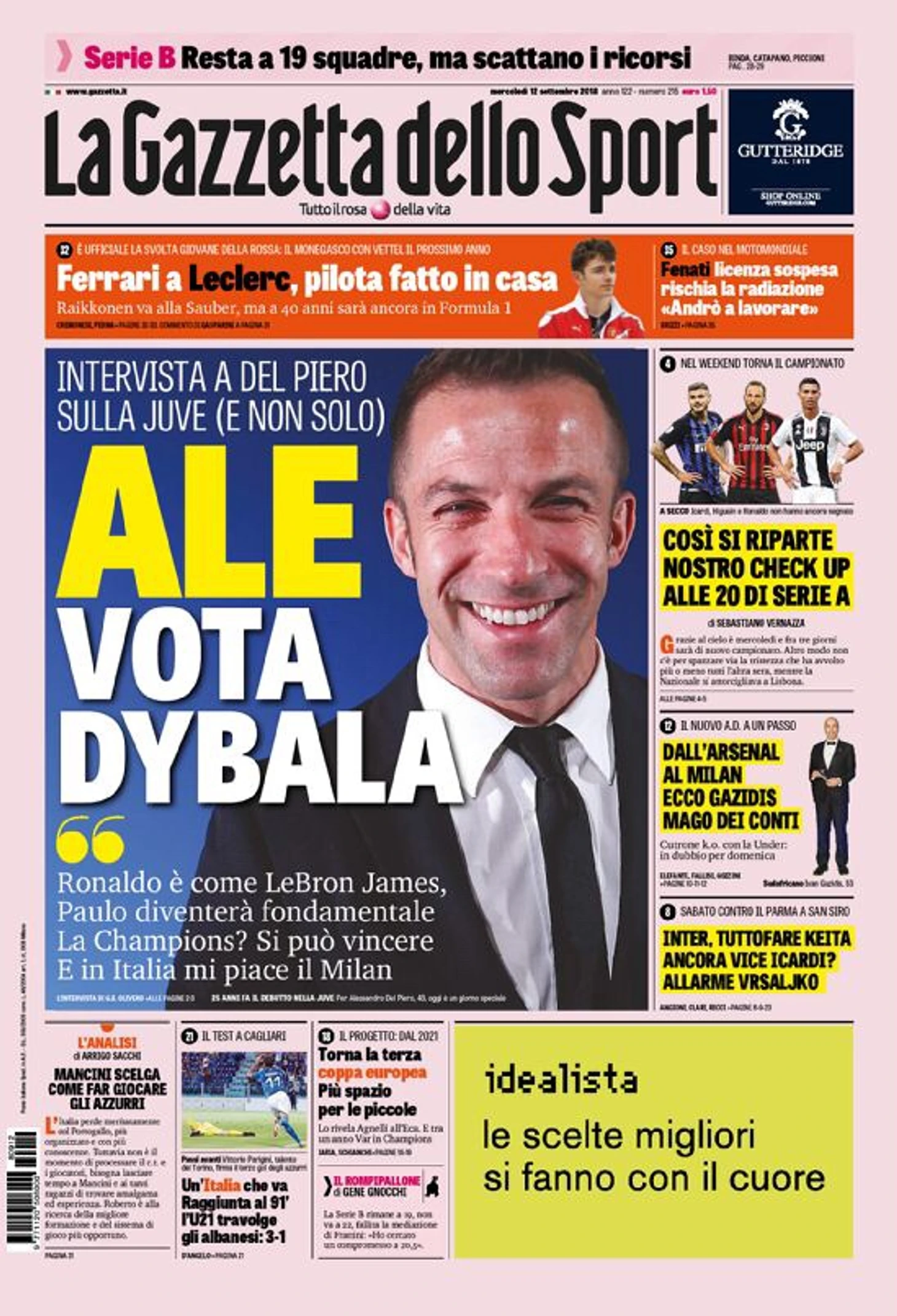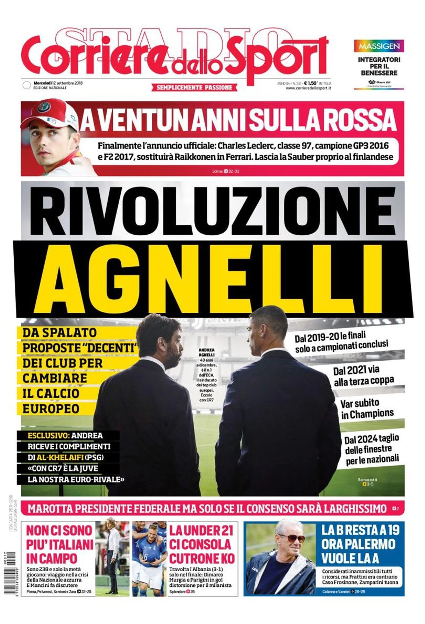 Революция Аньелли. Заголовки Gazzetta, TuttoSport и Corriere за 12 сентября
