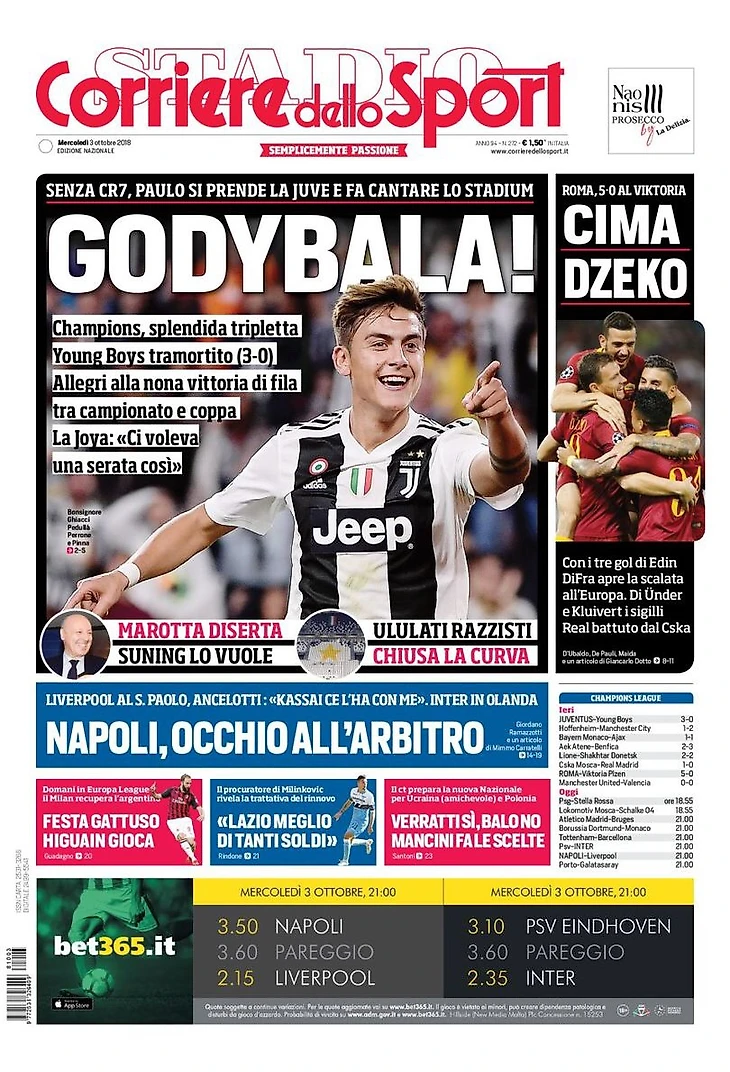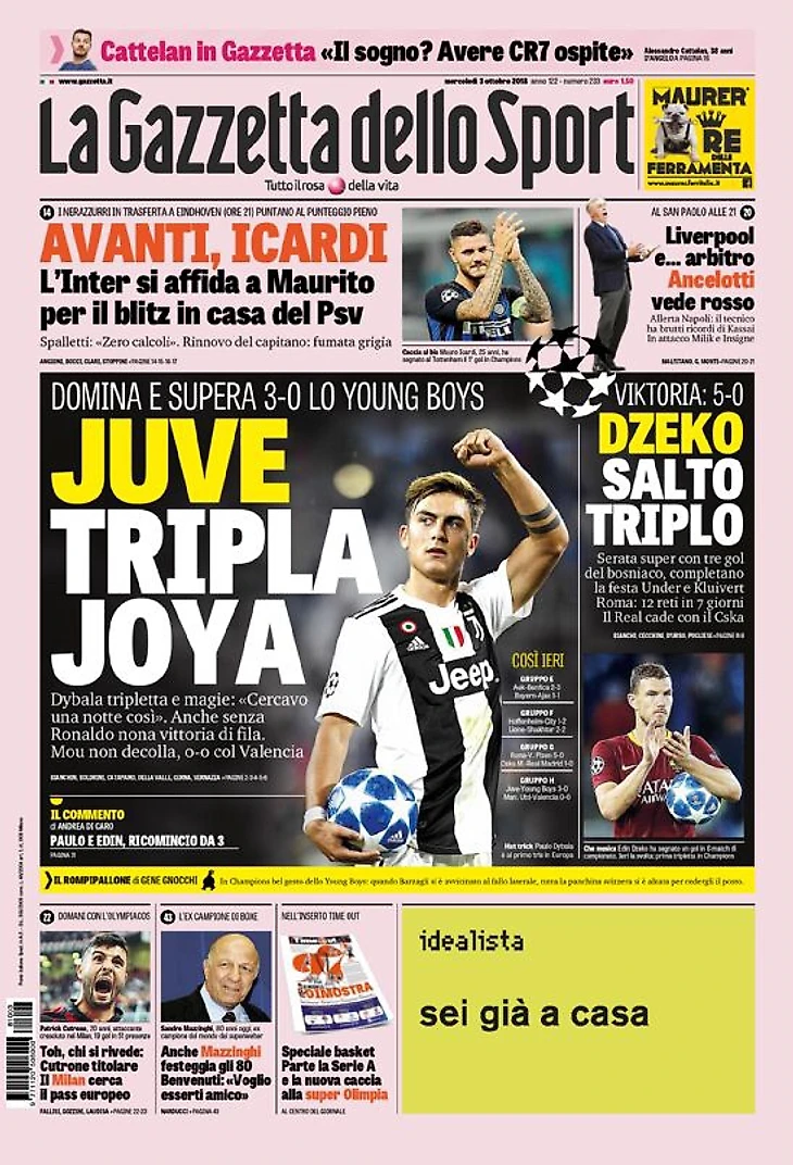 БогДибала! Заголовки Gazzetta, TuttoSport и Corriere за 3 октября