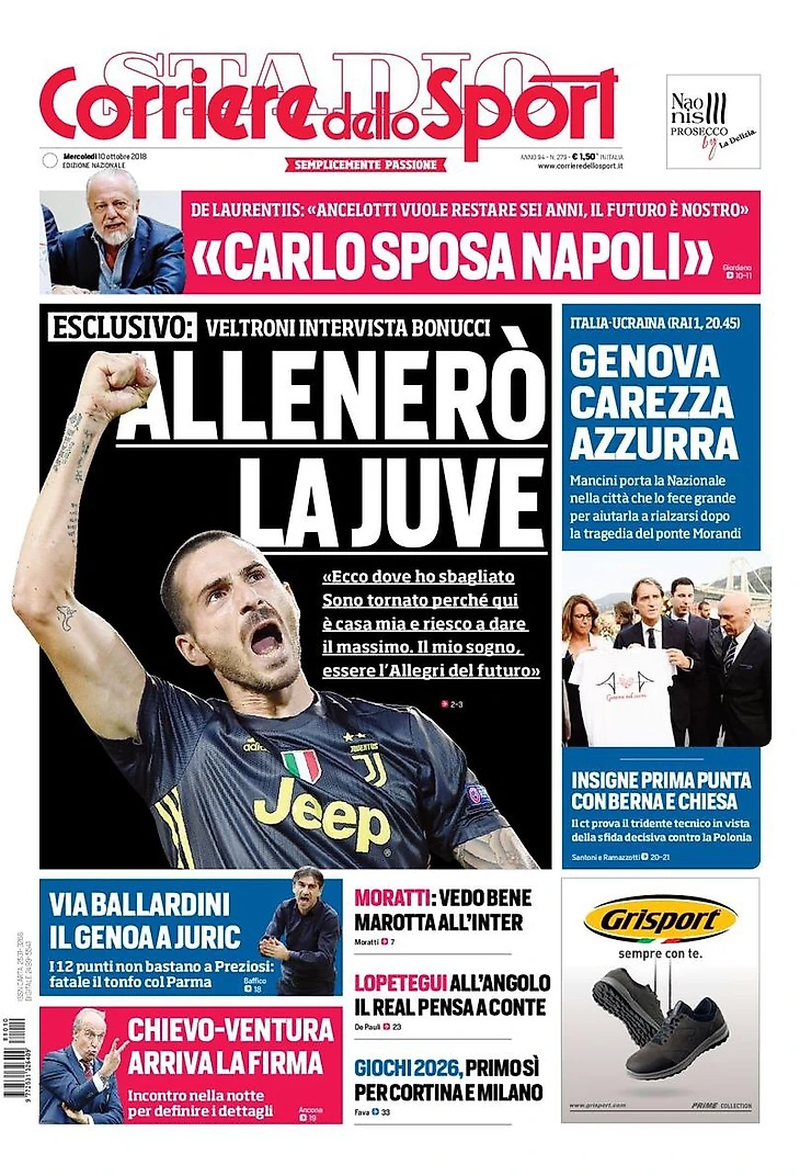 Мы за Геную. Заголовки Gazzetta, TuttoSport и Corriere за 10 октября