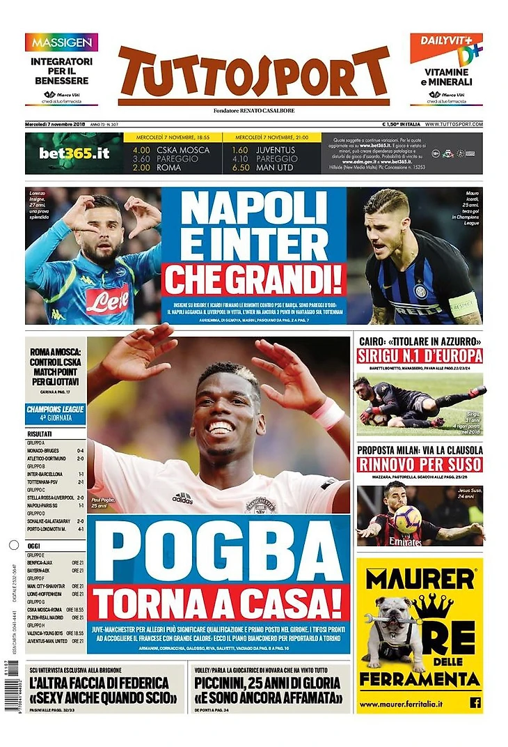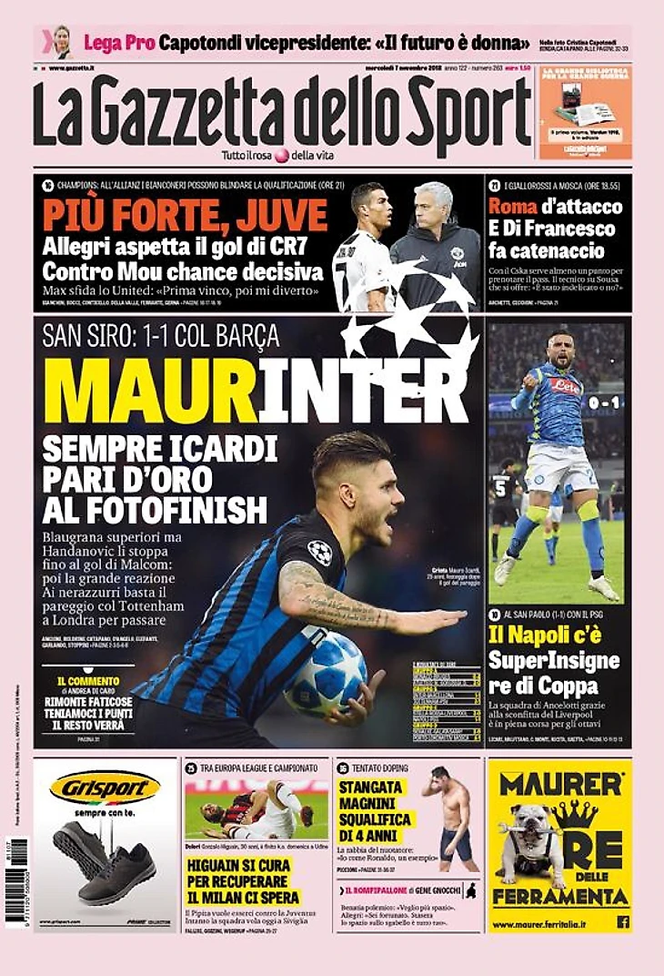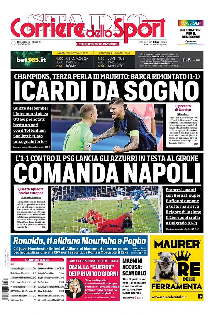 МаурИнтер. Заголовки Gazzetta, TuttoSport и Corriere за 7 ноября