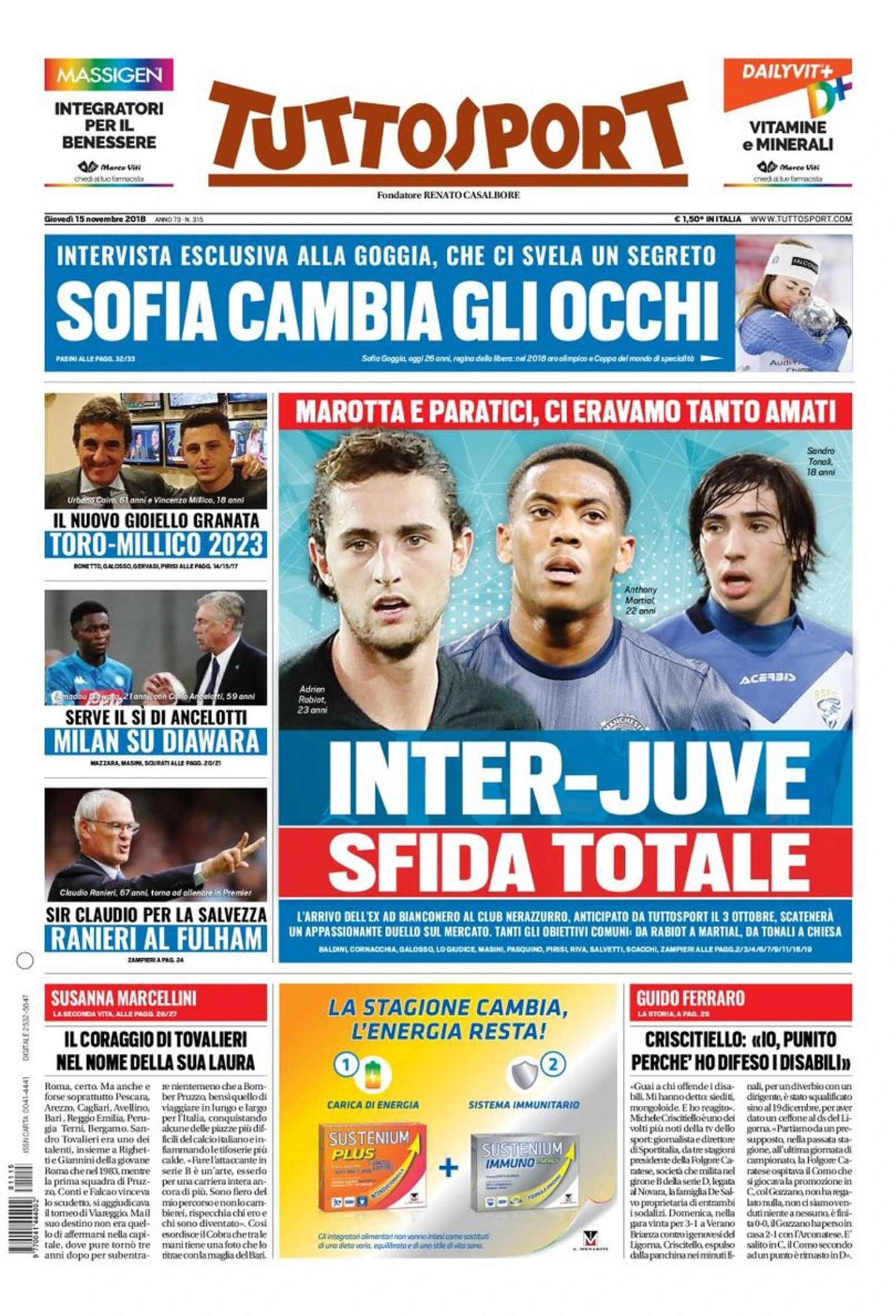 «Интер»-«Юве», тотальная схватка. Заголовки Gazzetta, TuttoSport и Corriere за 15 ноября