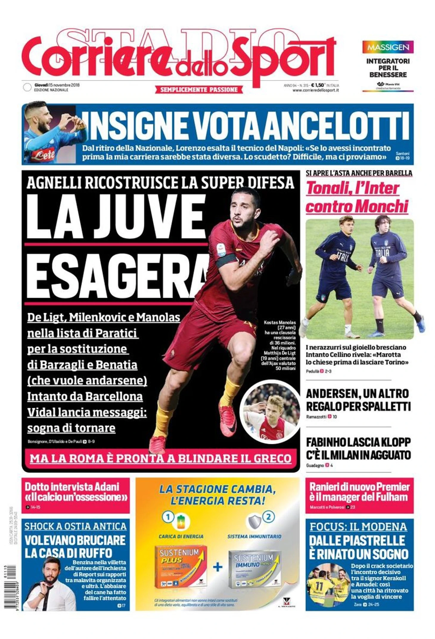 Аньелли реконструирует супер оборону. Де Лигхт, Миленкович и Манолас в списке Паратичи на замену Бардзальи и Бенатия (который хочет уйти). Между тем из «Барселоны» Видаль отправляет послания: он мечтает вернуться.