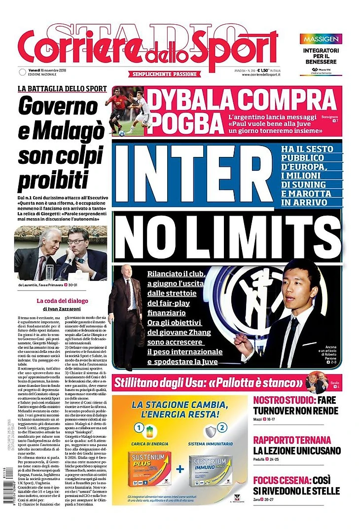 У них шестая посещаемость в Европе, миллионы Suning и приходит Маротта. Перезапуск клуба, в июне покинувшего узкие рамки финансового фэйр-плей. Теперь цели молодого Цзяня – наращивать международный вес и сместить «Юве».