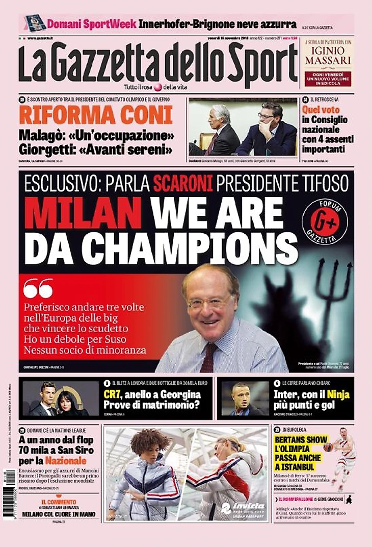 Эксклюзив, говорит Скарони, президент-болельщик: «Предпочту трижды выйти в Европе в число лучших, чем выиграть Скудетто. У меня есть симпатия к Сусо. Никаких миноритарных акционеров».