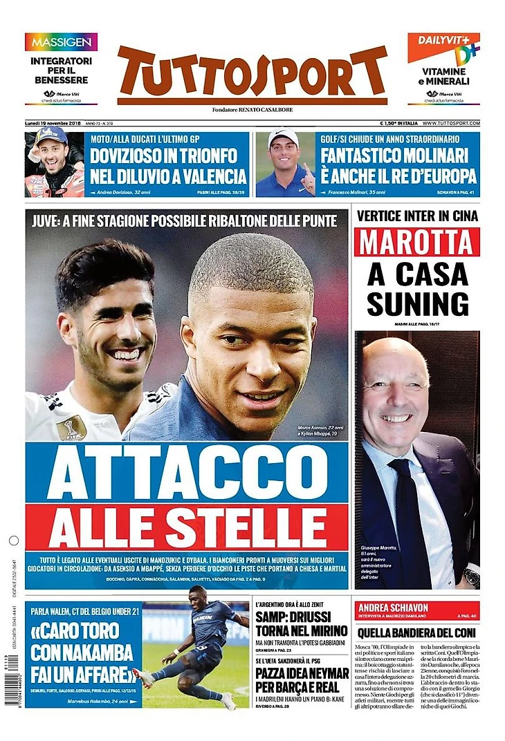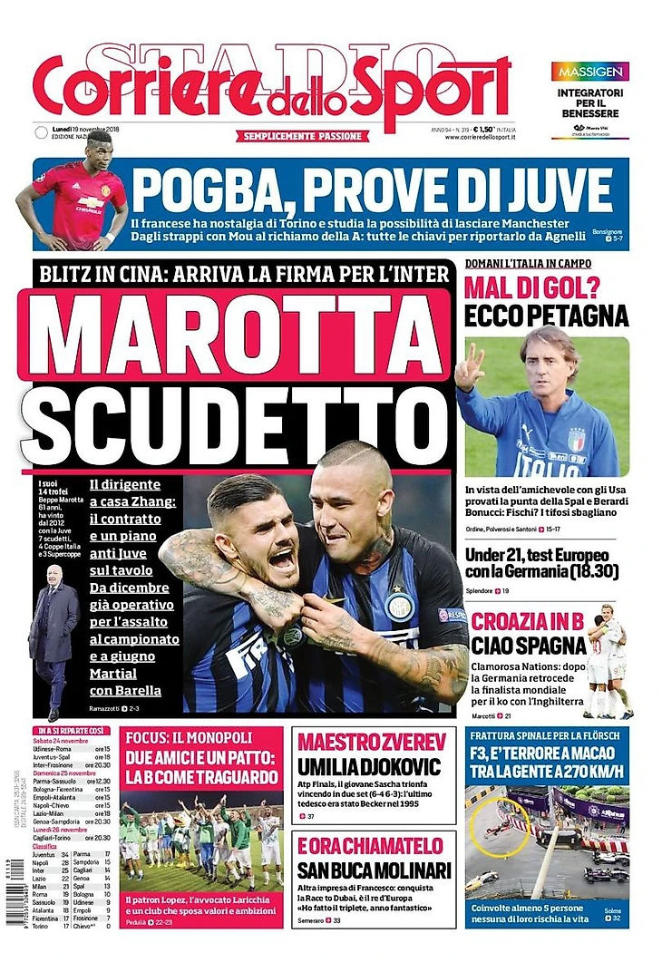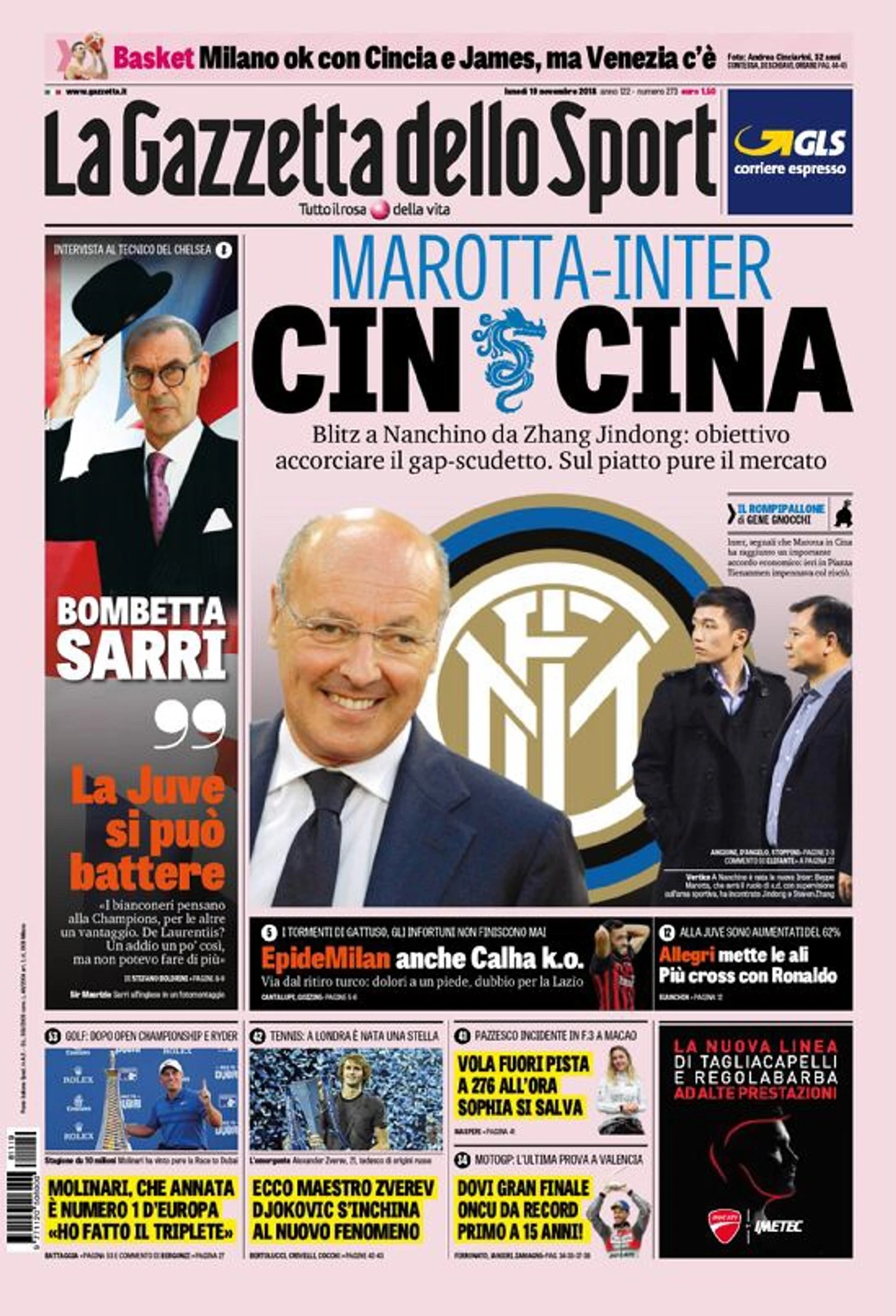 Маротта, Скудетто. Заголовки Gazzetta, TuttoSport и Corriere за 19 ноября