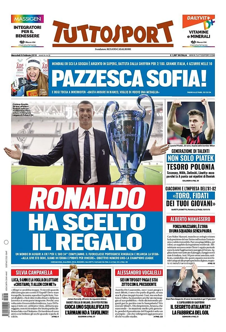 Мир поздравил CR7 с его 34-ым днём рождения. Португальский мастер поблагодарил и начал схватку: «В «Юве» я в порядке, мы в форме и готовы побеждать». Цель номер один: Лига Чемпионов.