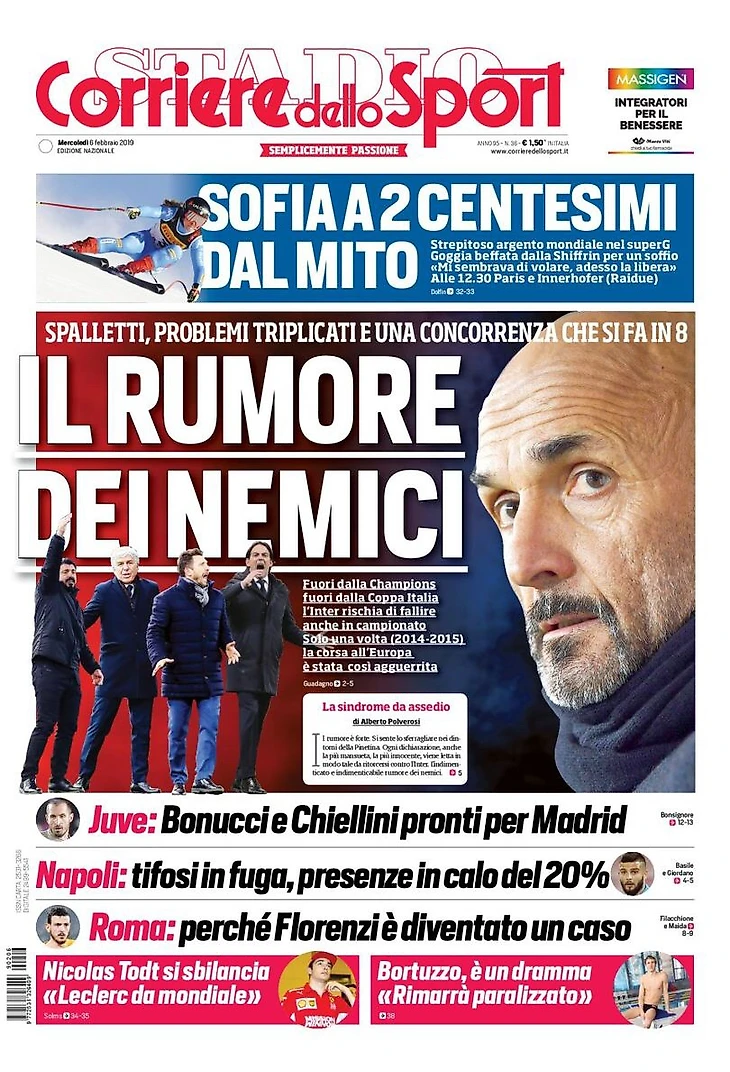 Шум врагов. Заголовки Gazzetta, TuttoSport и Corriere за 6 февраля
