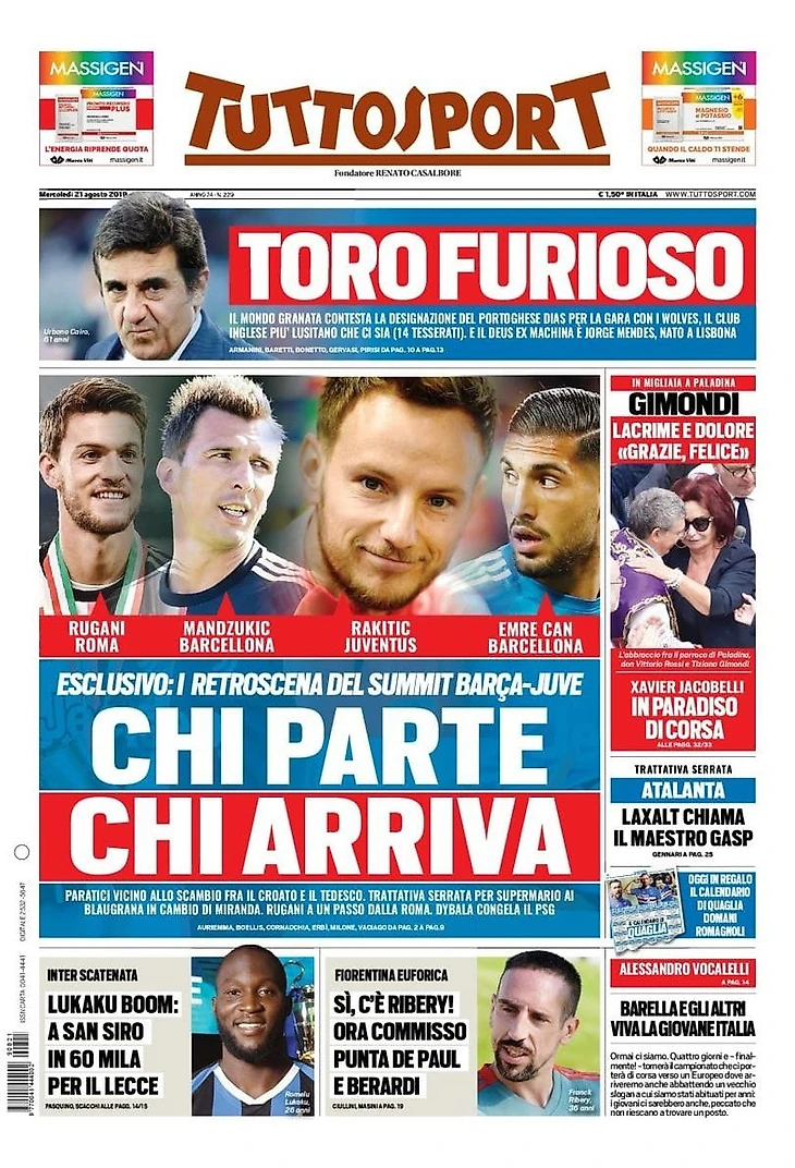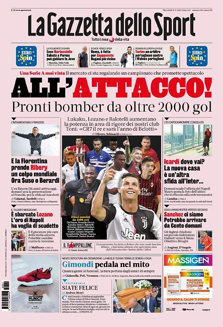В атаку! Заголовки Gazzetta, TuttoSport и Corriere за 21 августа
